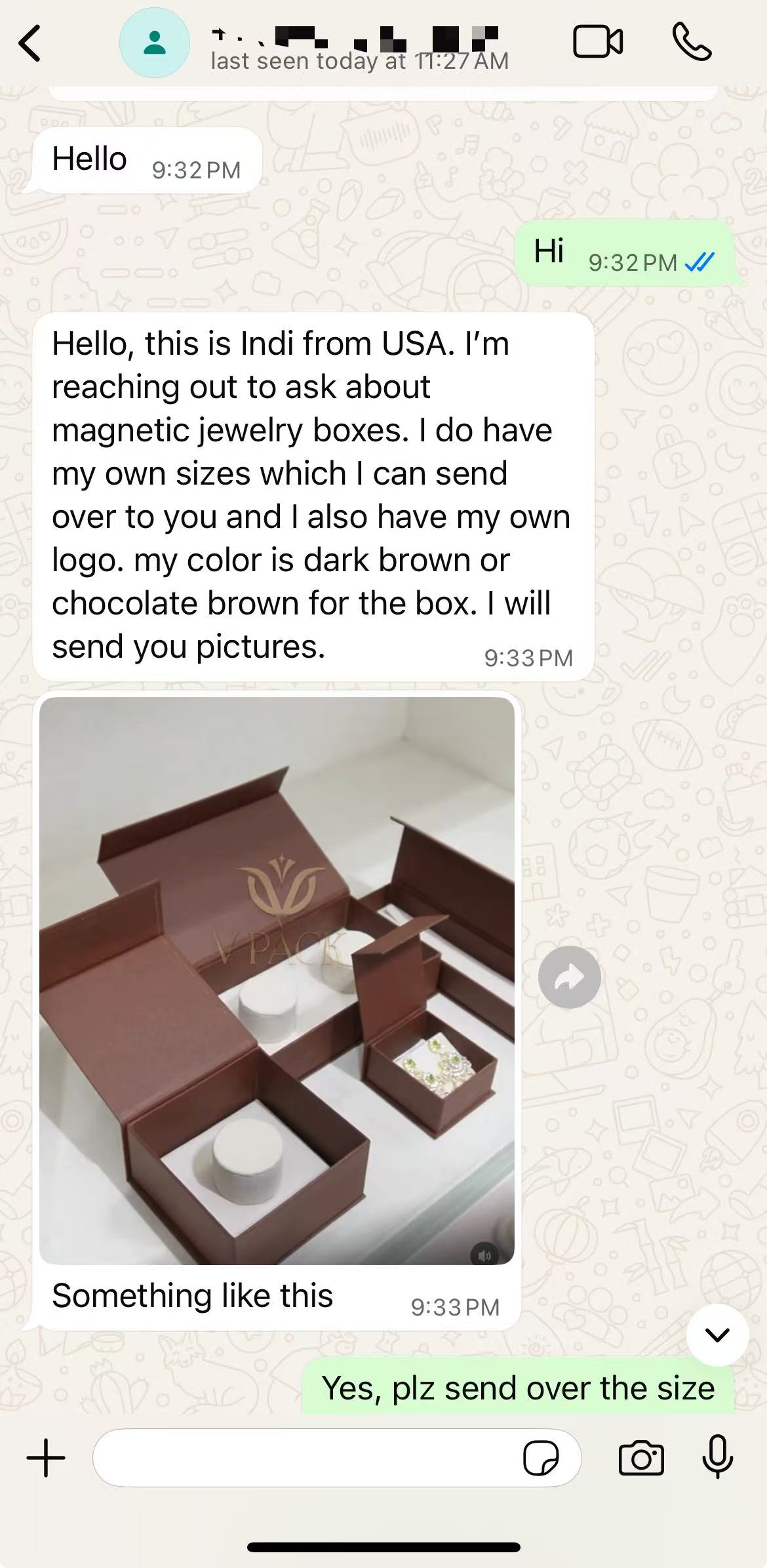 On August 28, 2025, Indira first reached out to Pandapackage through WhatsApp. She had a strong creative vision but wasn’t sure how to bring it to life. She was looking for magnetic jewelry boxes in chocolate brown with her custom logo, available in several sizes for necklaces, bangles, anklets, and single jewelry pieces.