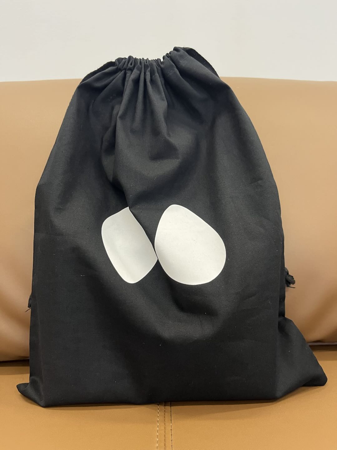 Dust Bags: Black cotton drawstring pouches printed with the “tears” icon — minimal yet symbolic.