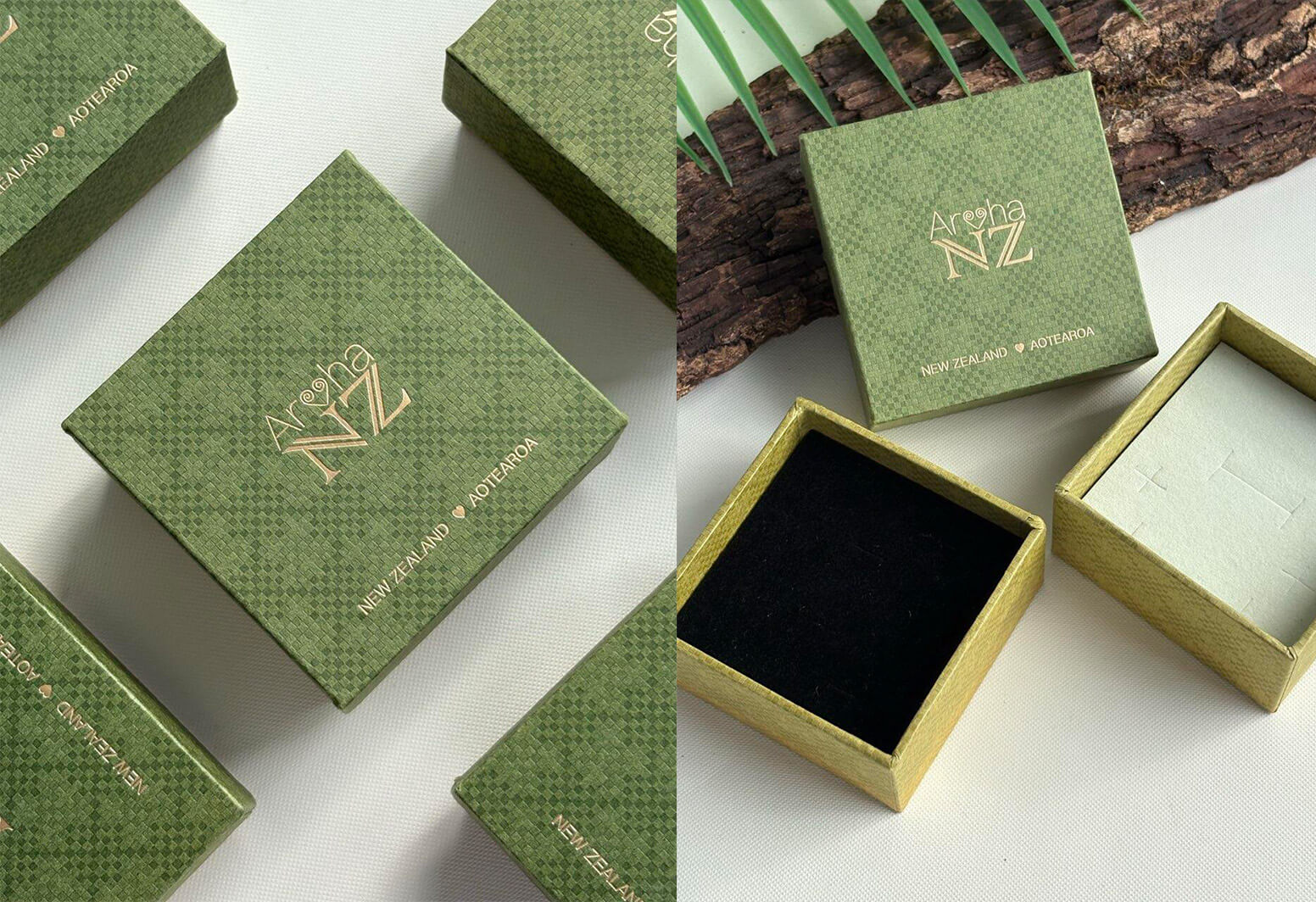 Designed with a refined green textured paper, this rigid gift box conveys a natural yet premium aesthetic. Gold foil stamping highlights the brand logo, while the sturdy structure and soft velvet insert ensure both protection and an elevated unboxing experience. Ideal for jewelry, skincare, and high-end gift packaging.