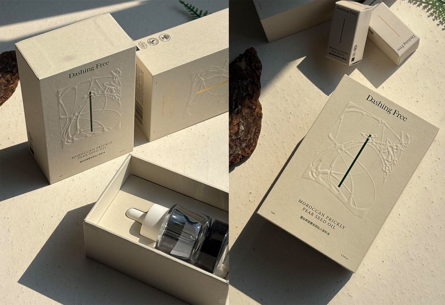 Designed with a soft neutral tone and subtle embossed artwork, this rigid box delivers a calm, high-end skincare aesthetic. Precise printing and minimal branding keep the look refined, while the custom insert securely holds glass bottles in place. Ideal for serums, oils, or premium skincare products that emphasize quality, purity, and brand sophistication.