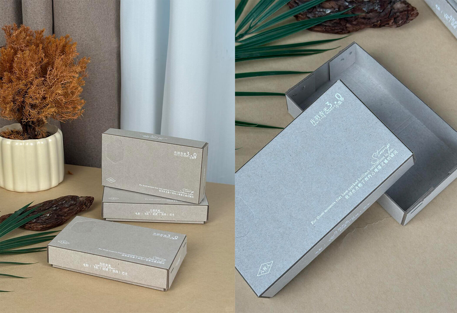 Featuring a muted gray tone and smooth matte finish, this drawer-style rigid box delivers a calm, contemporary aesthetic. Subtle white printing enhances the minimalist design without overpowering the packaging. The sliding structure adds a refined unboxing experience, making it ideal for wellness products, tech accessories, stationery, or modern lifestyle gifts.