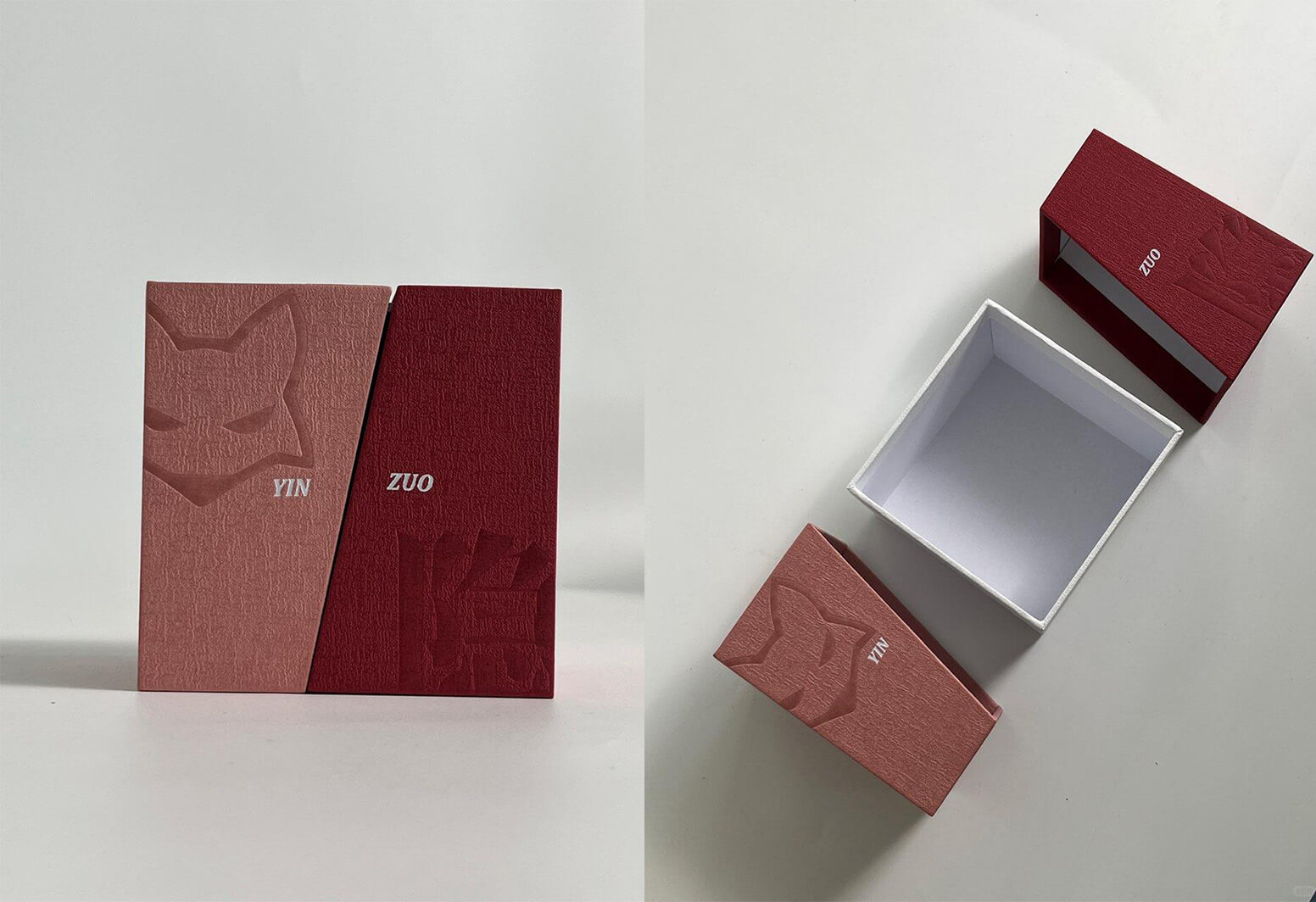 This rigid gift box features a refined two-tone color palette with subtle embossed graphics that add depth and tactile appeal. Minimal logo printing keeps the design clean while highlighting brand identity. The sturdy structure and lift-off lid make it ideal for fashion accessories, small luxury items, or limited-edition gift packaging.