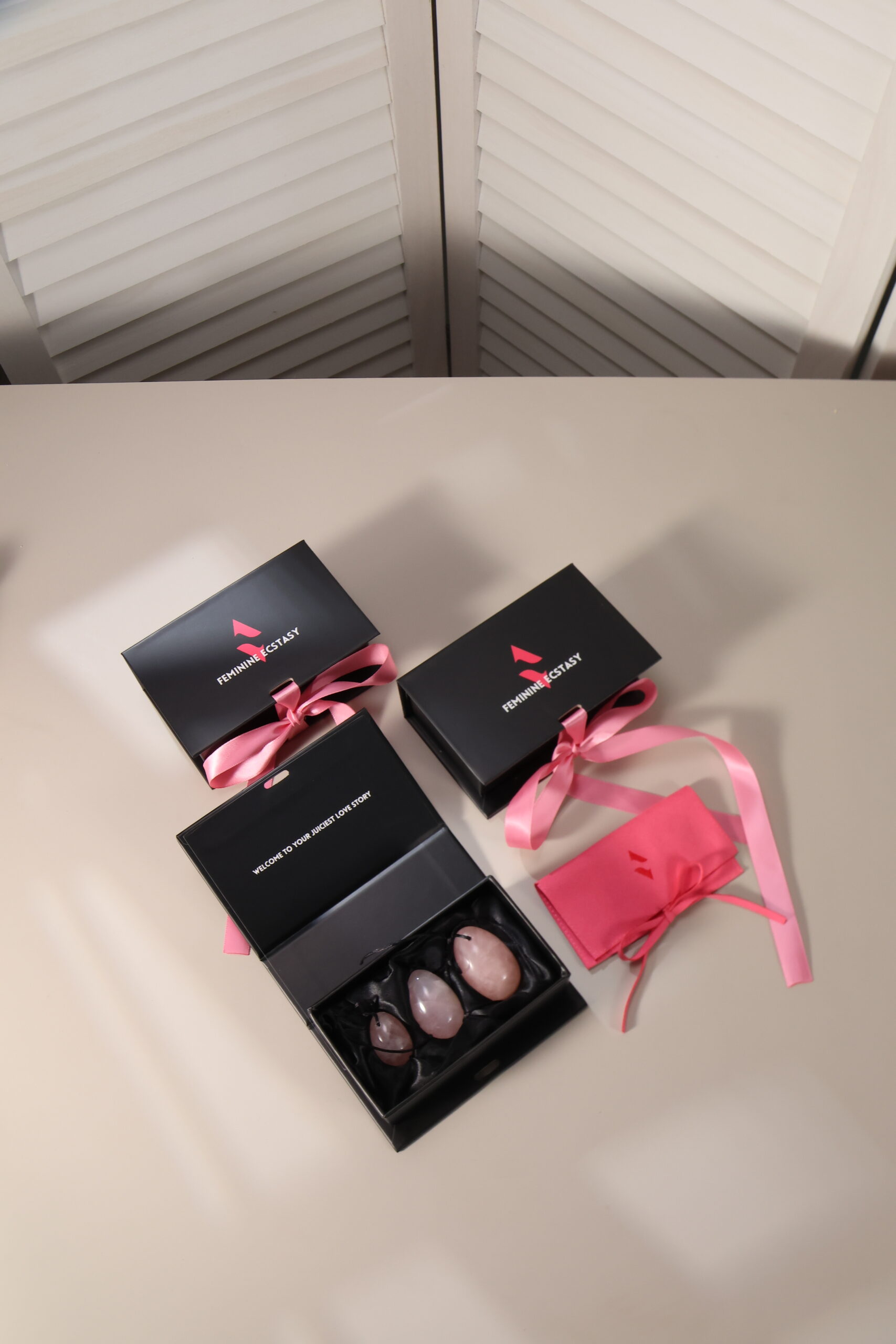 Gemstone & Crystal Packaging – Especially suitable for products like rose quartz sets, jade rollers, gua sha tools, and healing stones. The satin lining protects delicate surfaces while presenting them beautifully.