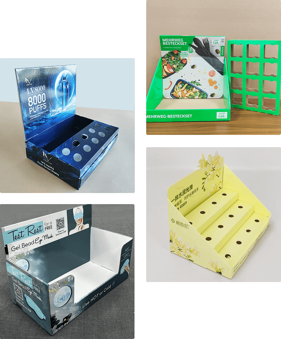 Our custom display boxes are designed to do more than hold products — they’re built to drive attention and increase sales. With tailored structures, striking graphics, and brand-centered messaging, these boxes enhance product visibility in retail settings, trade shows, and promotional displays. Whether placed on countertops or shelves, each display box is engineered to combine form and function, helping you stand out in crowded spaces and tell a compelling brand story.