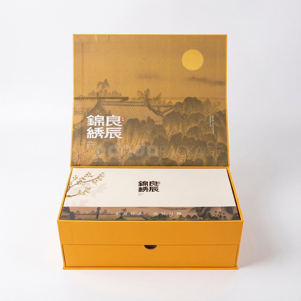 Premium Amber Glow Mooncake Vault Orange Embossed Gift