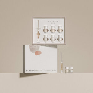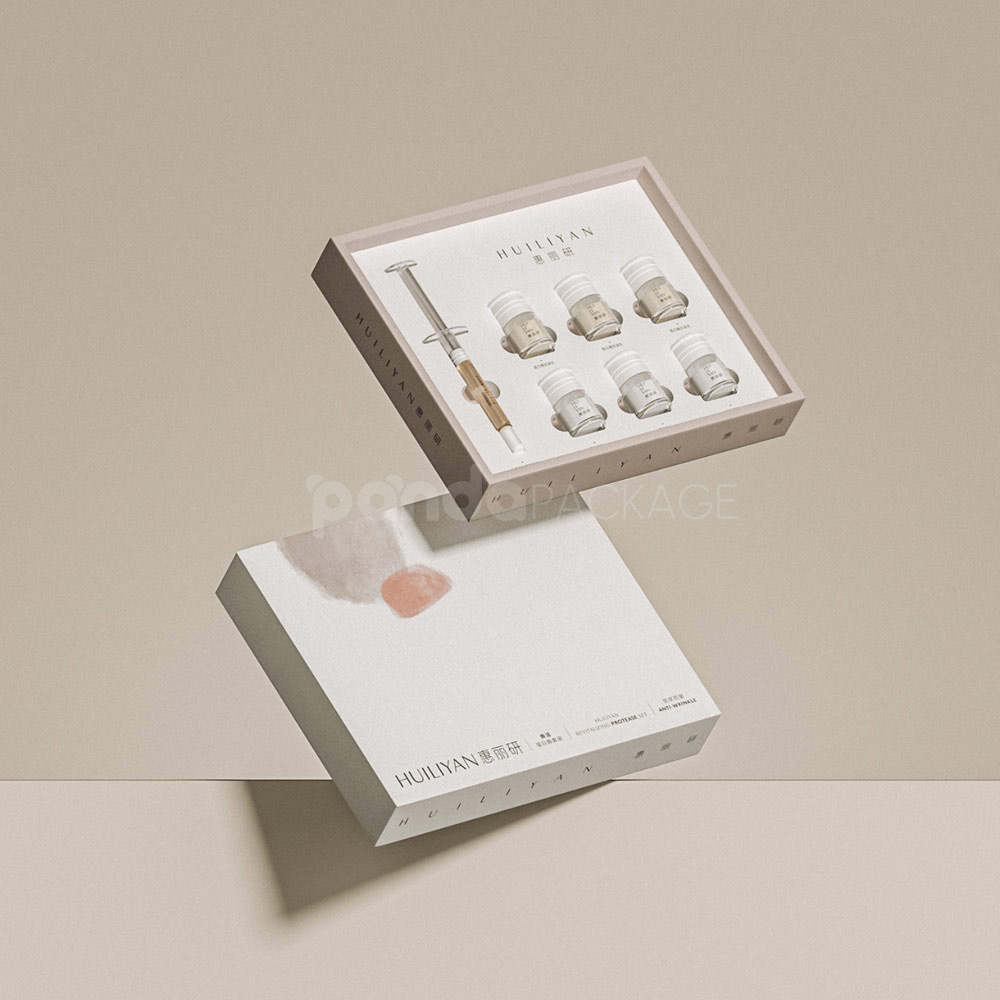 Beige Drawer Box with Compartments Premium Skincare Gift Box and Bottle