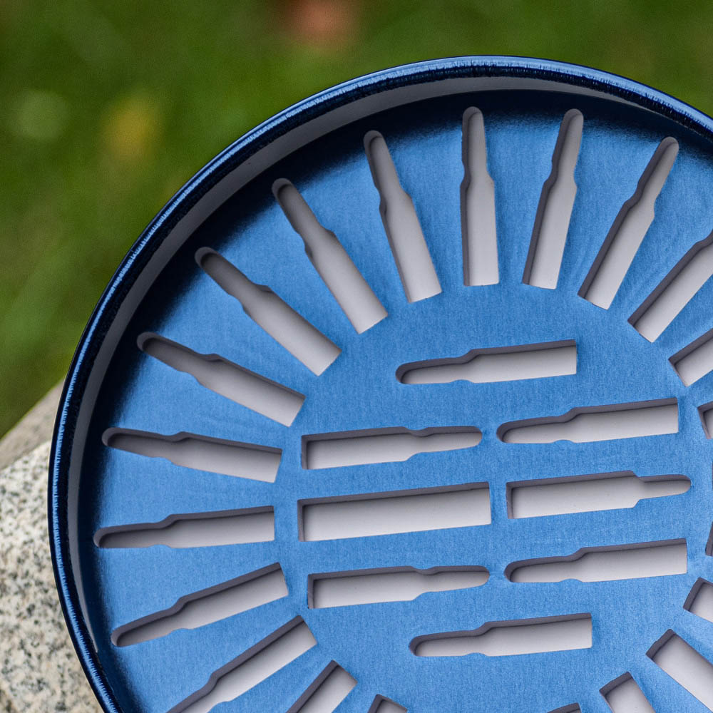 Premium round metal tin box with a precision-cut foam insert, designed for secure packaging and elegant display of ampoules, serum vials, or cosmetic samples. Durable, stylish, and ideal for pharmaceutical or skincare brands.