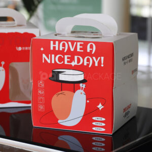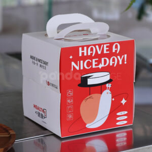 This lively gift box features a bold red front with a white graphic of a smiling sock and the uplifting message “Have a Nice Day!”—making it perfect for retail gifts, festive giveaways, or product samples. Its compact cube shape, integrated handle, and sturdy cardboard structure ensure both practicality and charm.