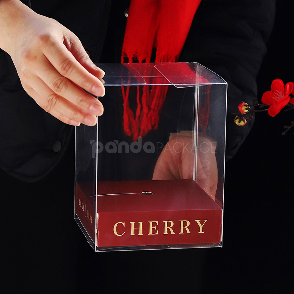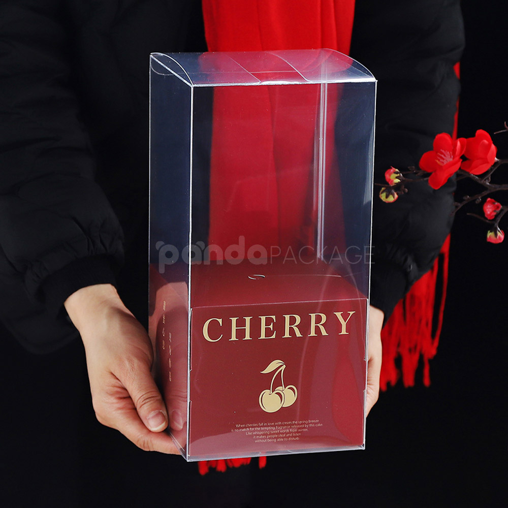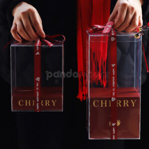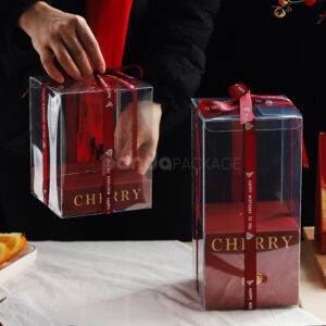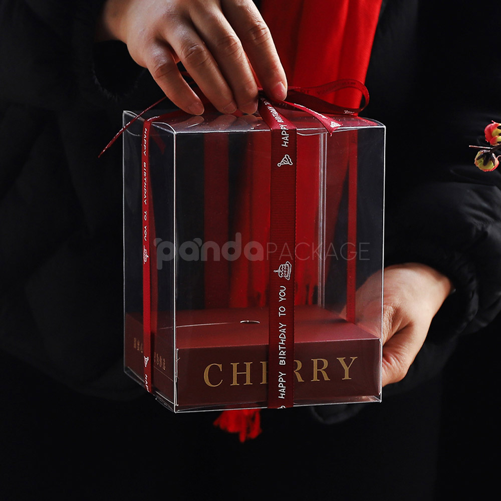 Cherry Red Transparent Cake Box with Elegant Ribbon