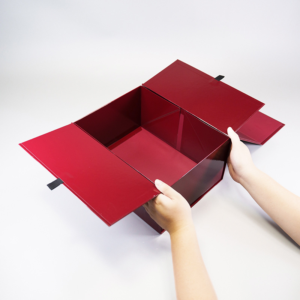 Collapsible Magnetic Rigid Gift Box in Glossy Red for Luxury Packaging