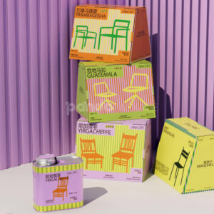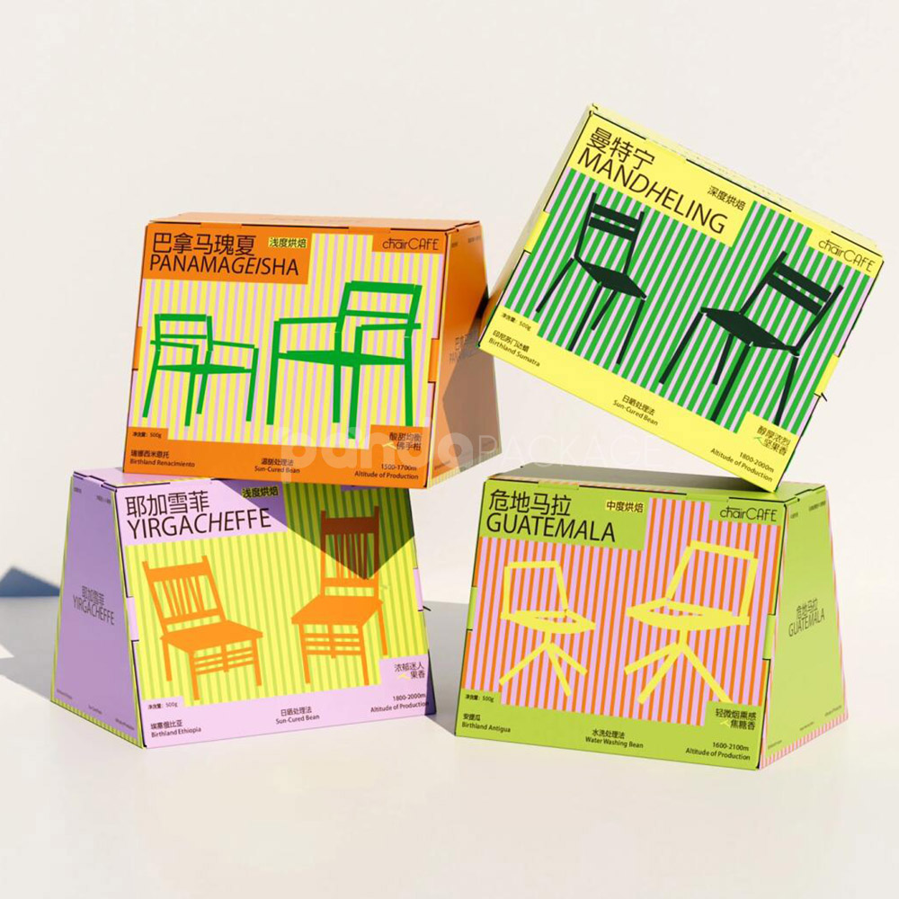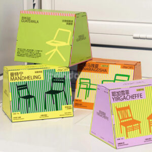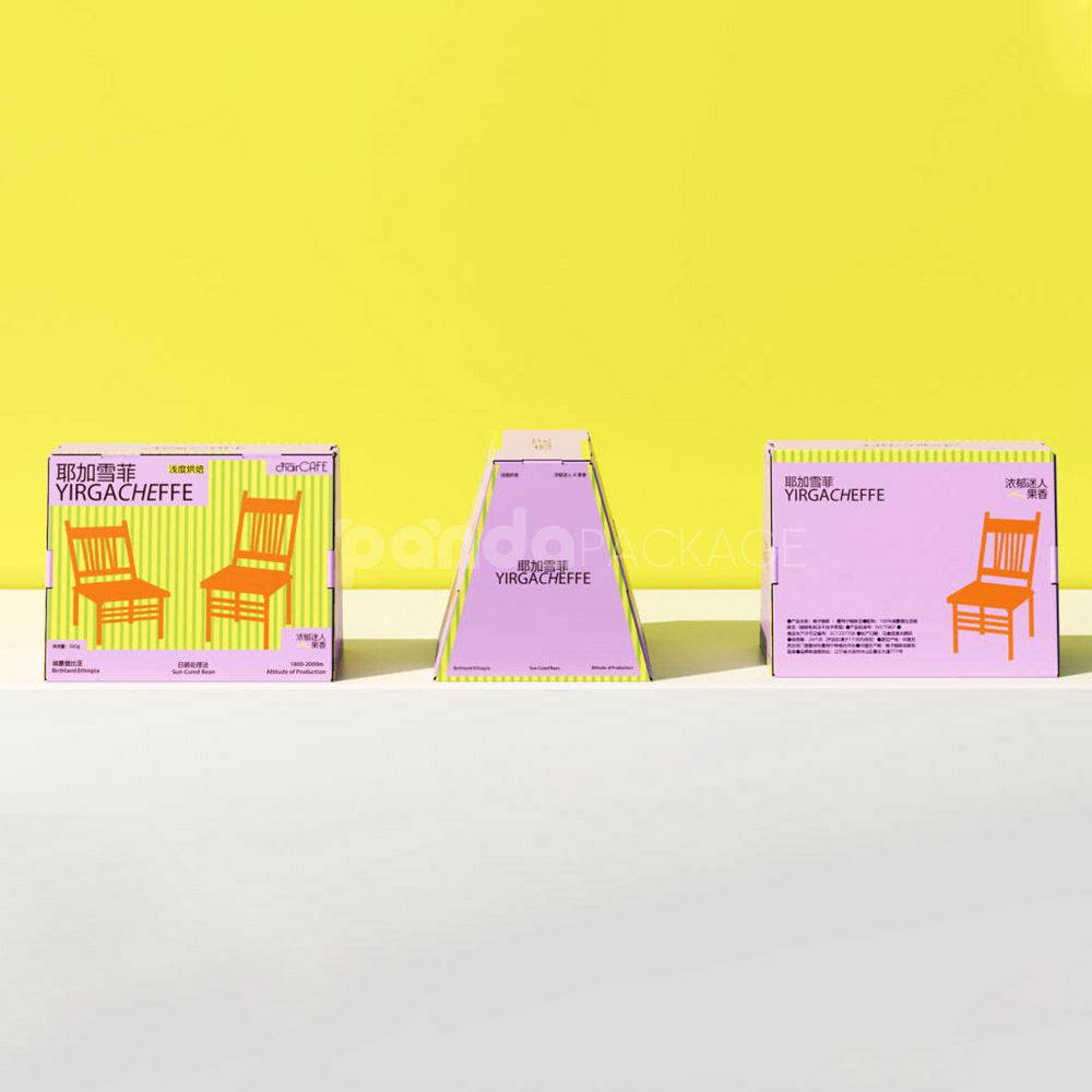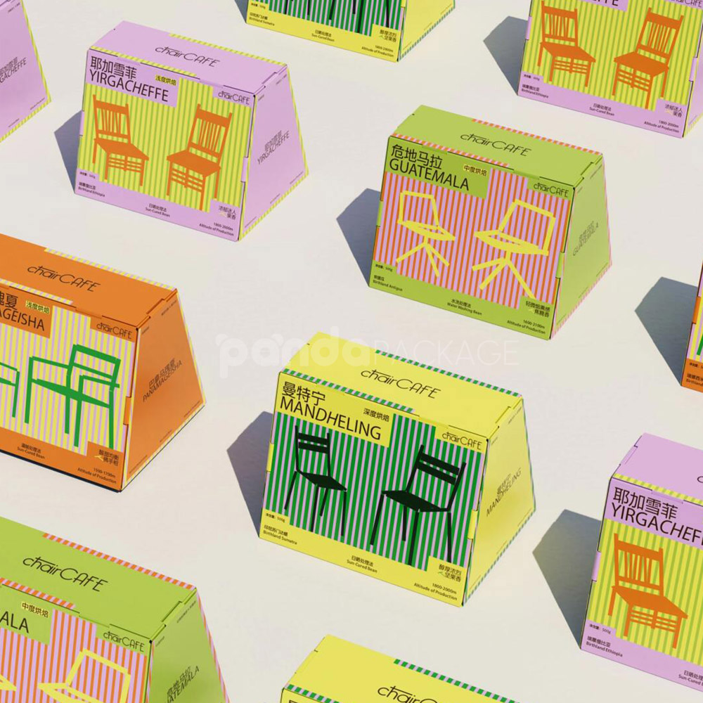 Colorful Pyramid Coffee Packaging Box with Origin Chair Graphics