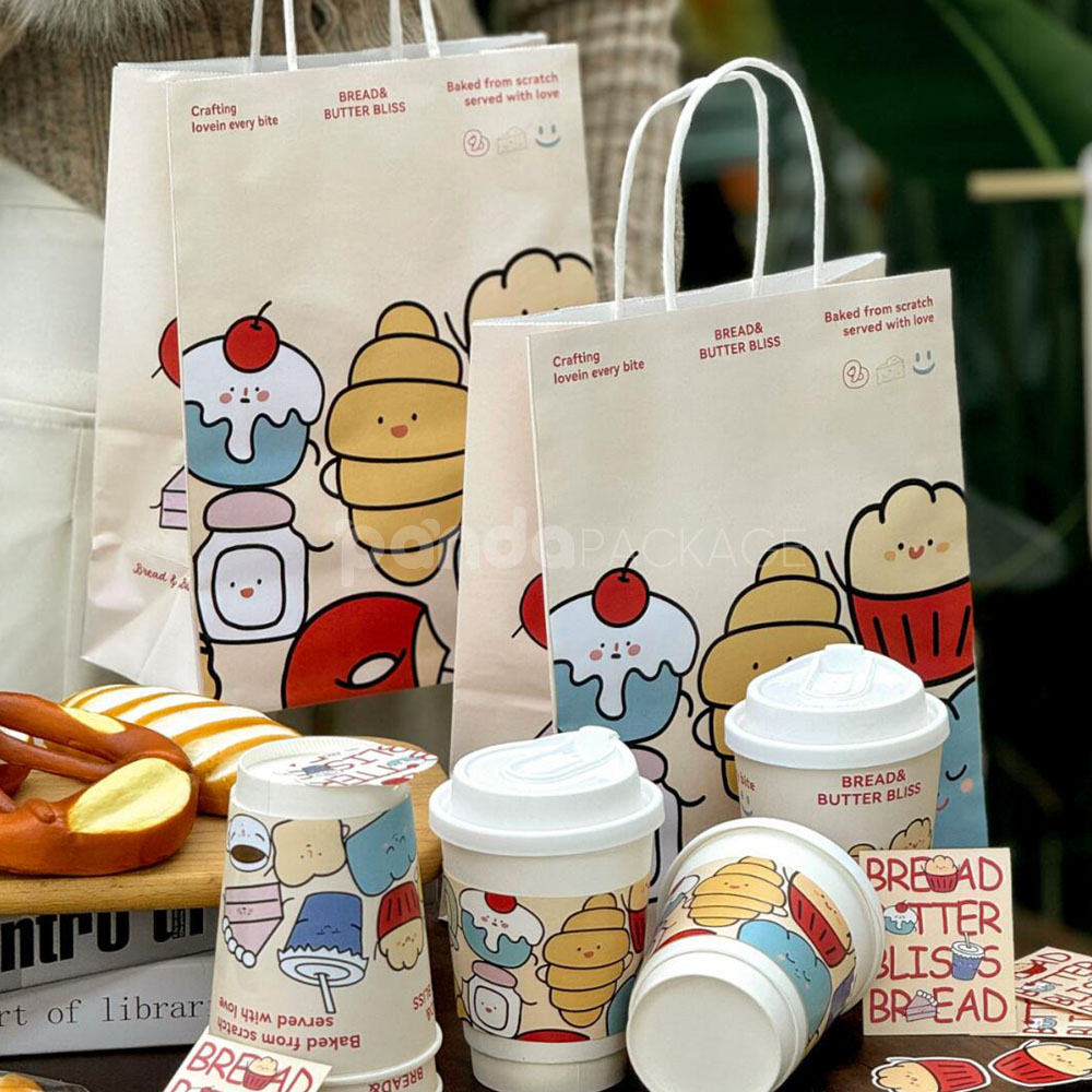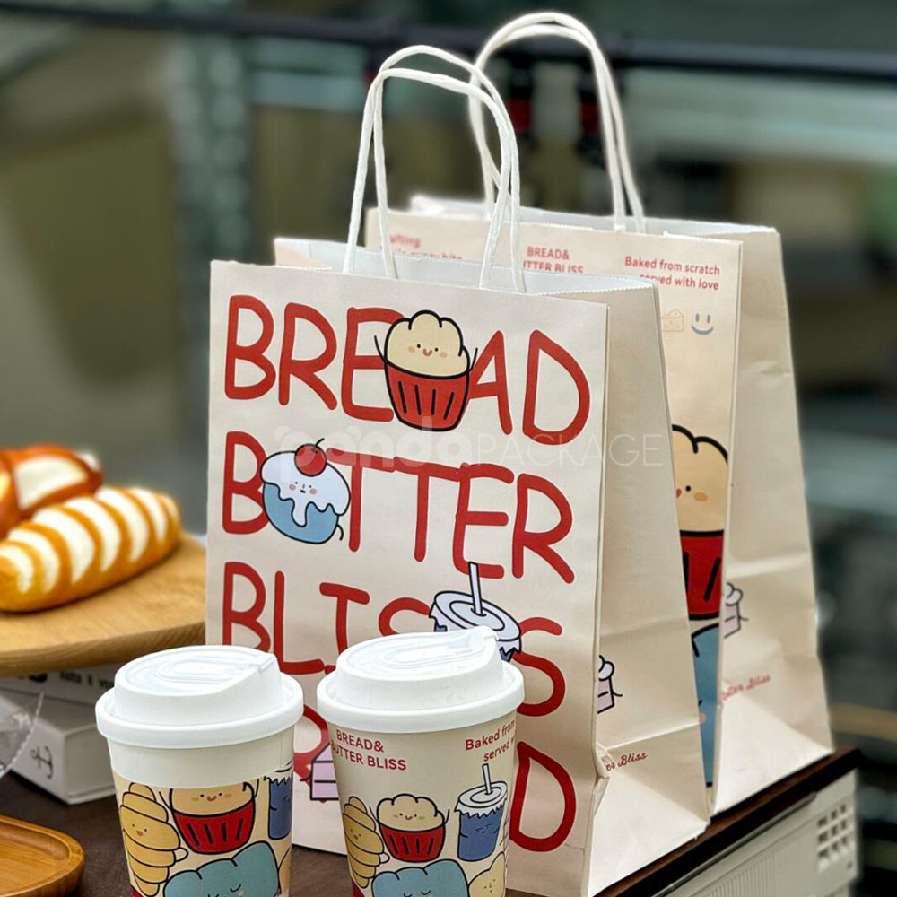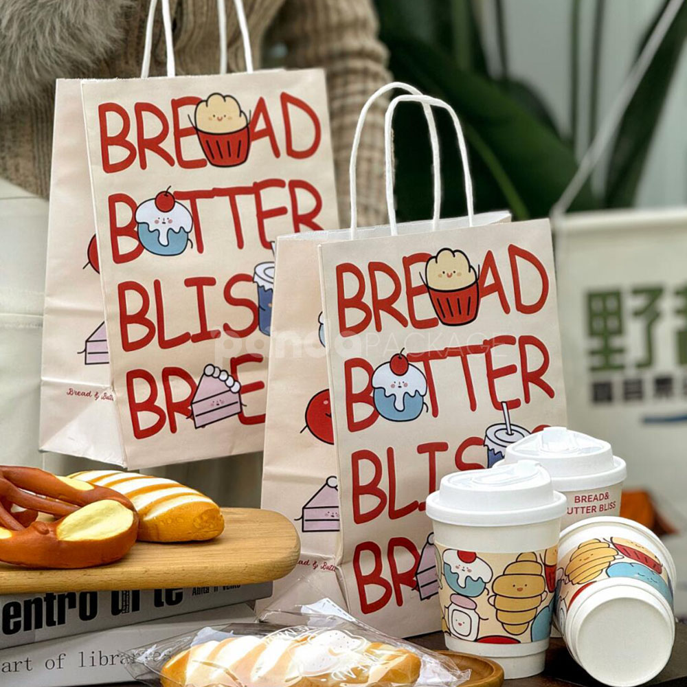 Colorful Restaurant Paper Bags for Bread Snacks and Drinks