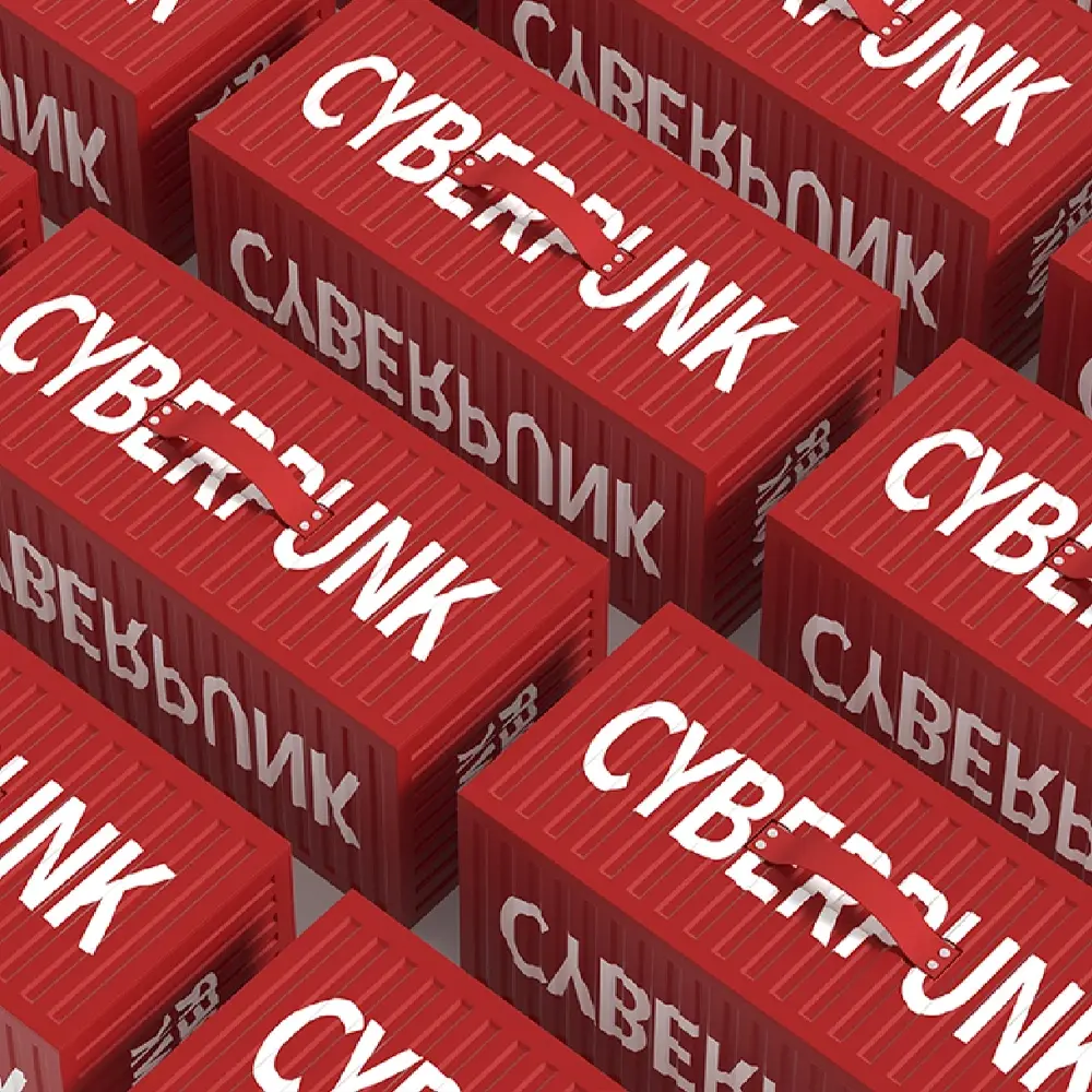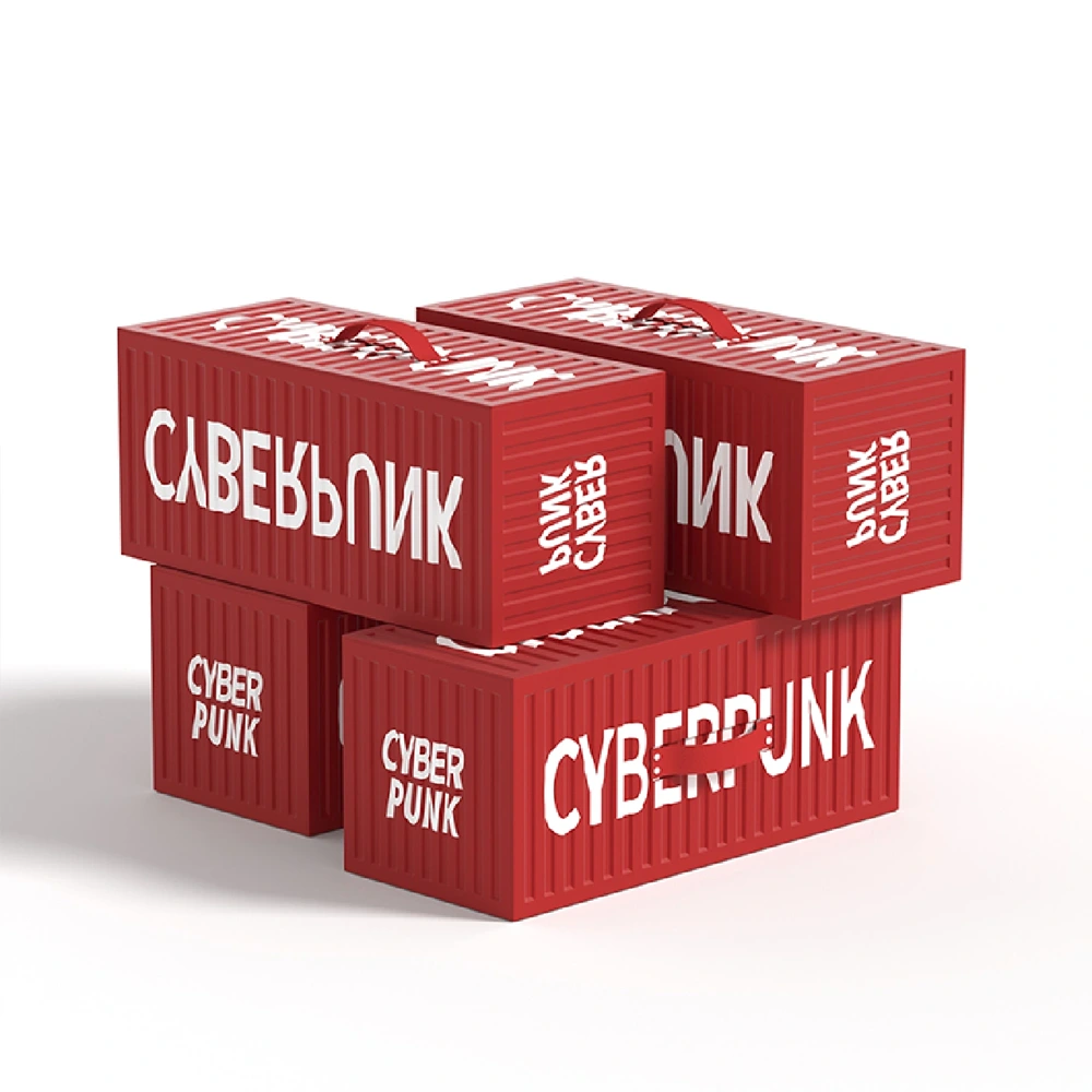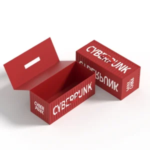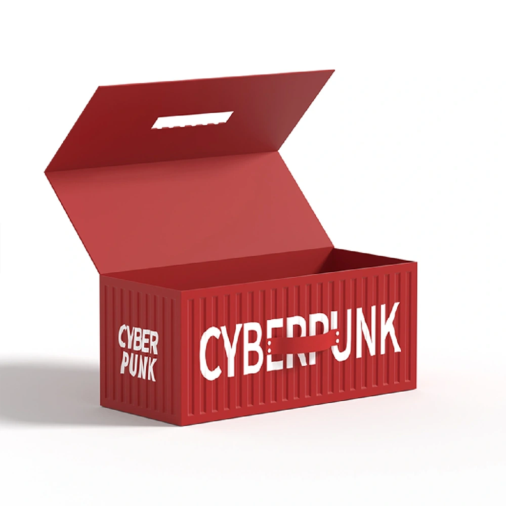Rigid box with a bold red corrugated container design, featuring “CYBERPUNK” text and a built-in handle. Ideal for retail gift packaging, limited edition collectibles, and e-commerce shipments.