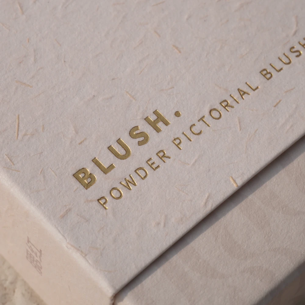 Cream Textured Rigid Box with Gold Foil for Blush Packaging