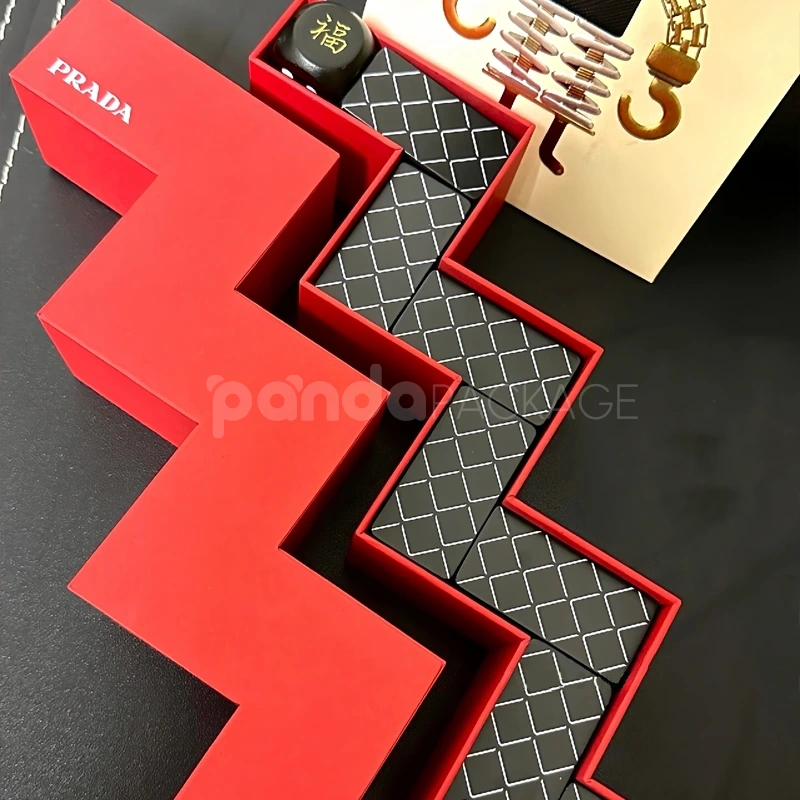 Creative Zigzag Fold-Out Gift Box with Red & Black Contrast Design