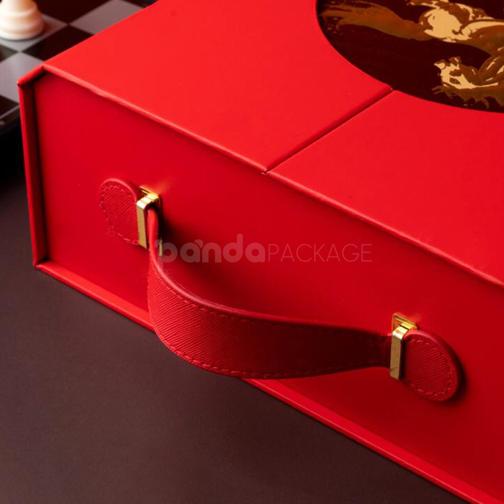 Custom Red Luxury Carrier Box for Wine and Gift Packaging