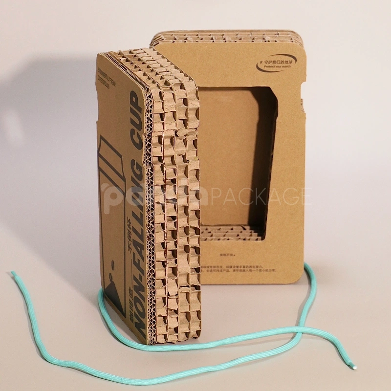 Eco Corrugated Kraft Cup Box with Cut-Out Display and Rope Handle