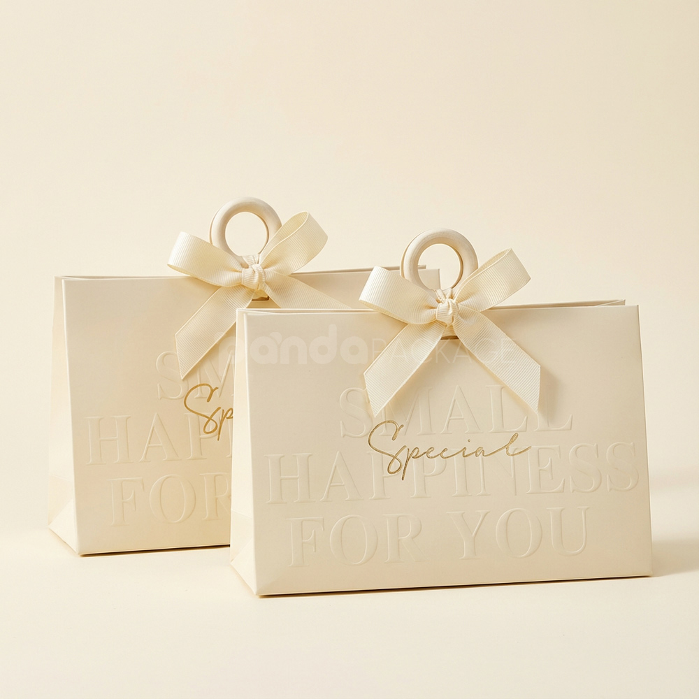 Elegant Cream Paper Gift Bag with Ribbon Handle
