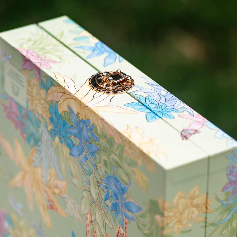 Elegant Floral Rigid Gift Box with Compartment Inserts