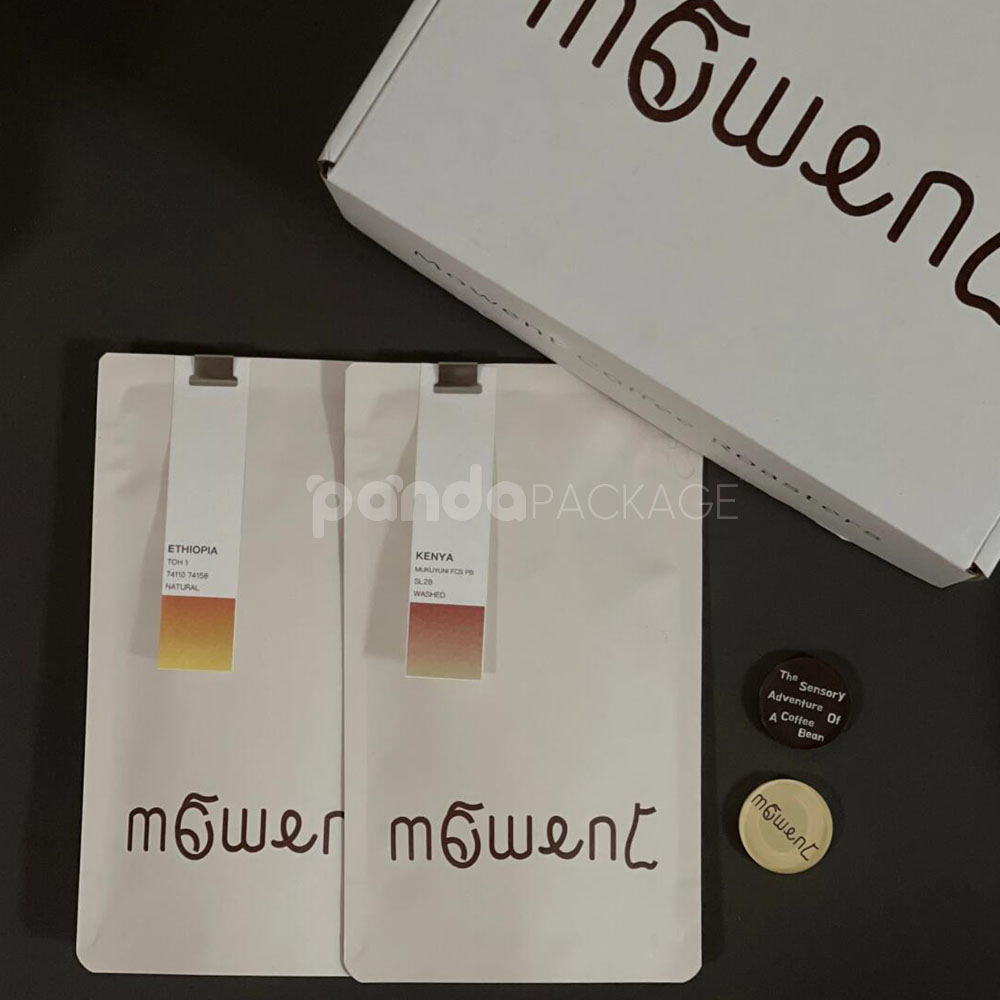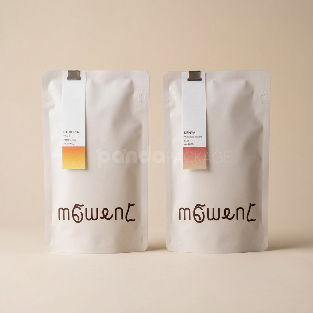 Elegant Stand Up Coffee Pouch with Clip-On Flavor Tag