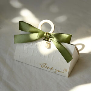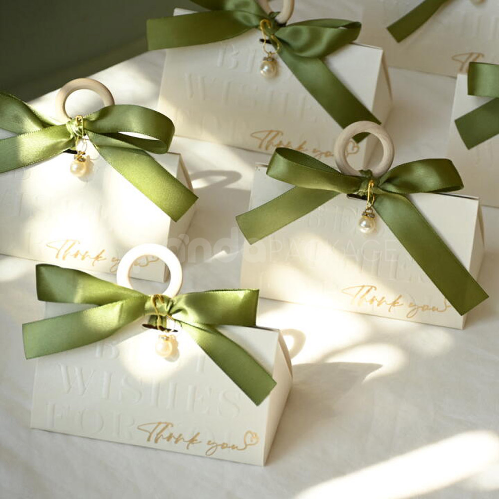 Elegant White Candy Gift Box with Green Ribbon and Pearl Decor