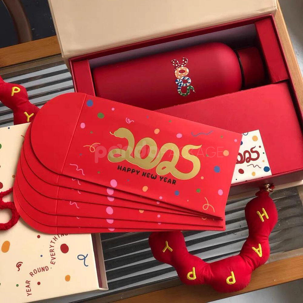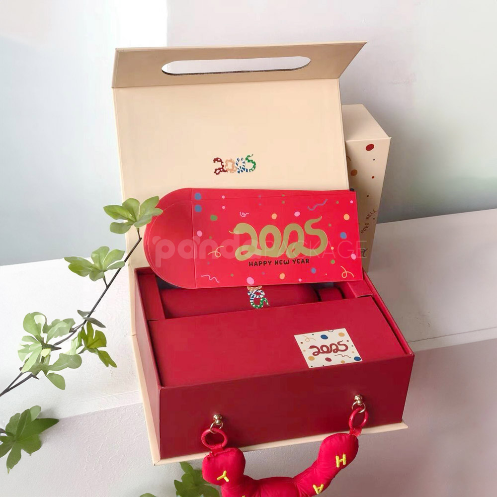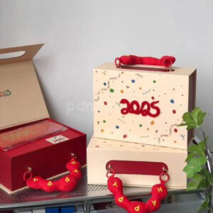 Festive 2025 Candy Gift Box with Decorative Red Happy Handle