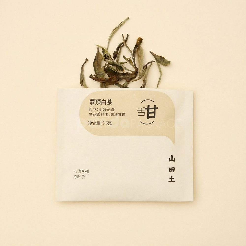 Flat Pouch Tea Packaging for White Tea with Clean Design