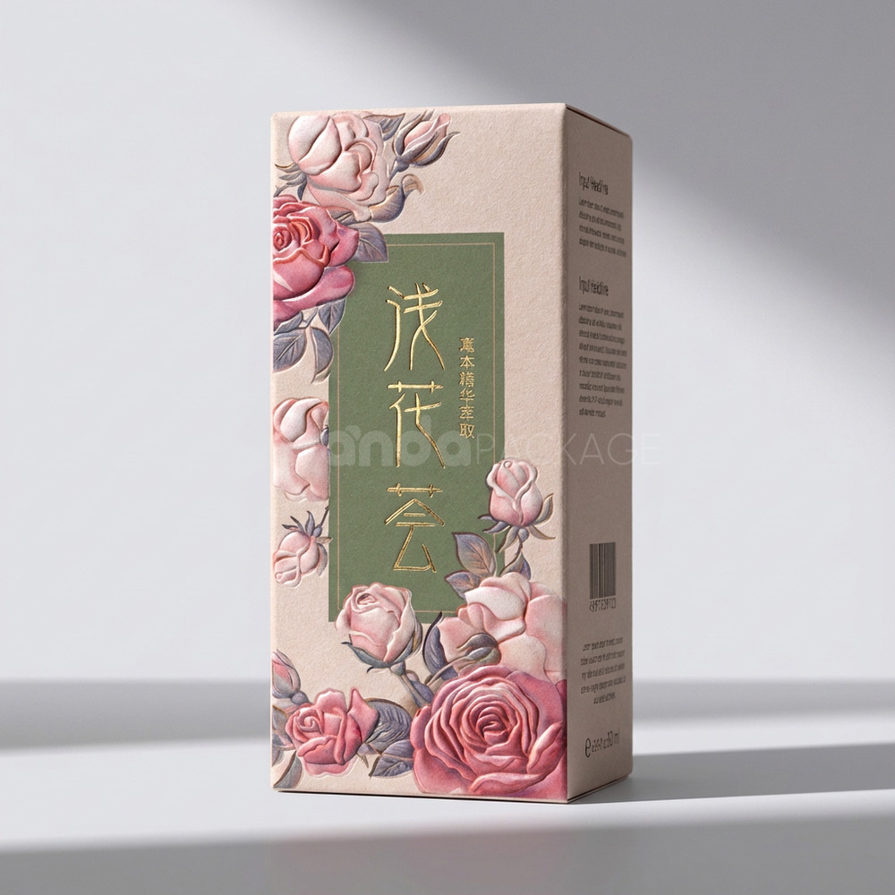 Crafted from sturdy paperboard, the box provides a lightweight yet durable structure that folds neatly into shape. Its matte finish offers a refined touch, while the floral graphics are printed in high resolution to ensure visual impact on retail shelves.