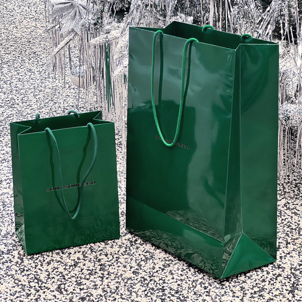 Glossy Green Apparel Shopping Bag with Sturdy Rope Handles