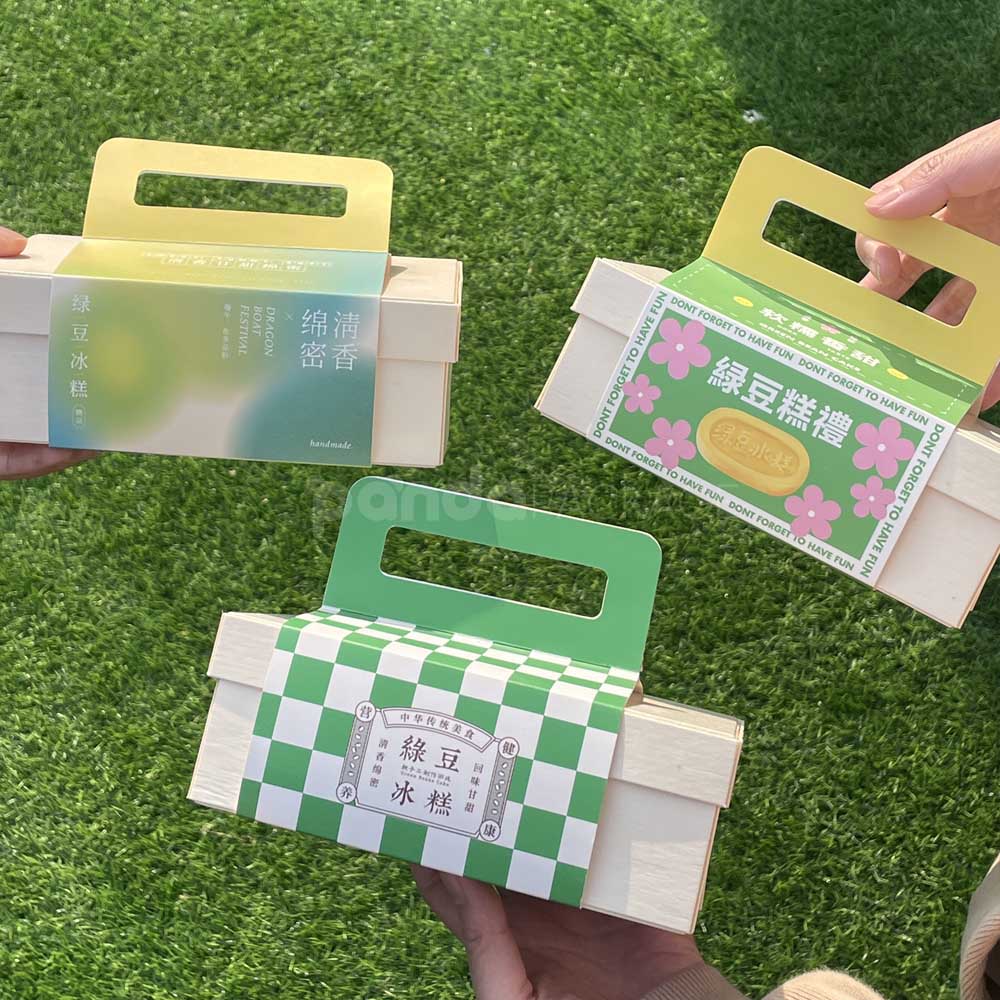 Gradient Green Dessert Boxes with Checkered Handle Design