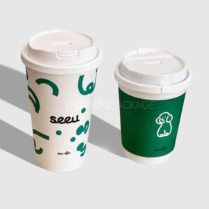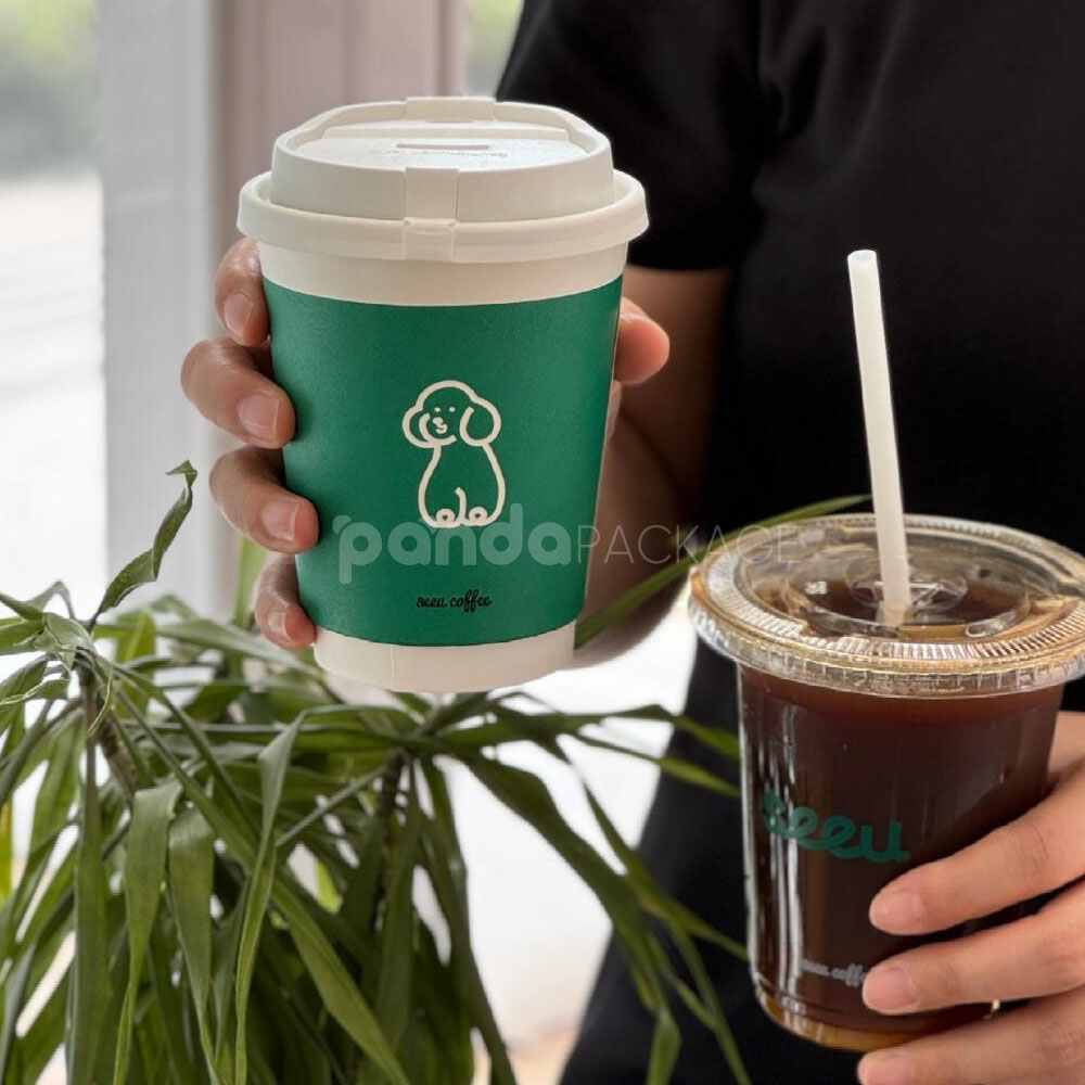Green Coffee Cups with Fun Minimalist Sleeve Designs