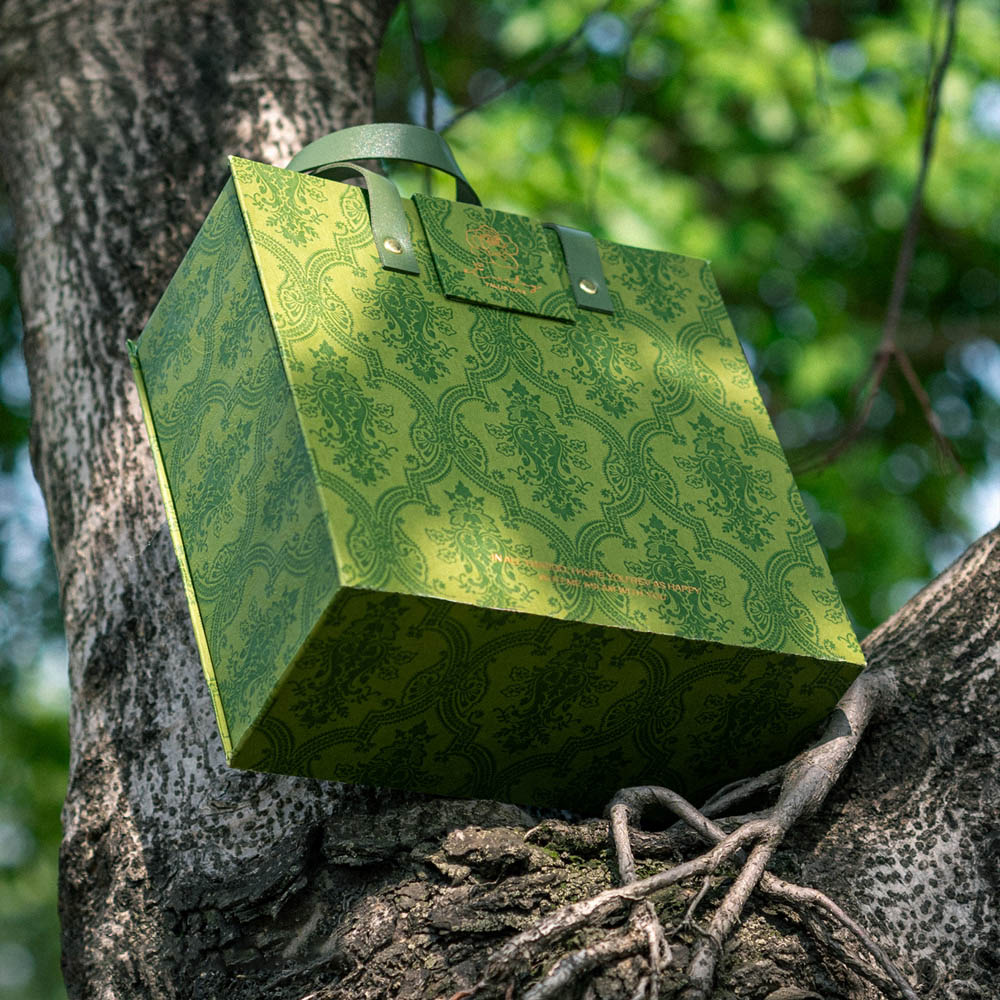 Green Embossed Gift Bag Box with Handle