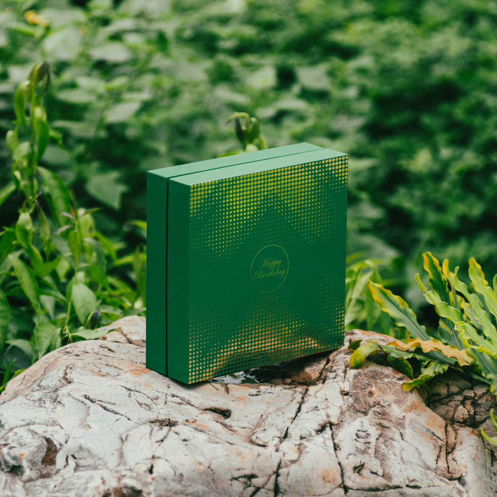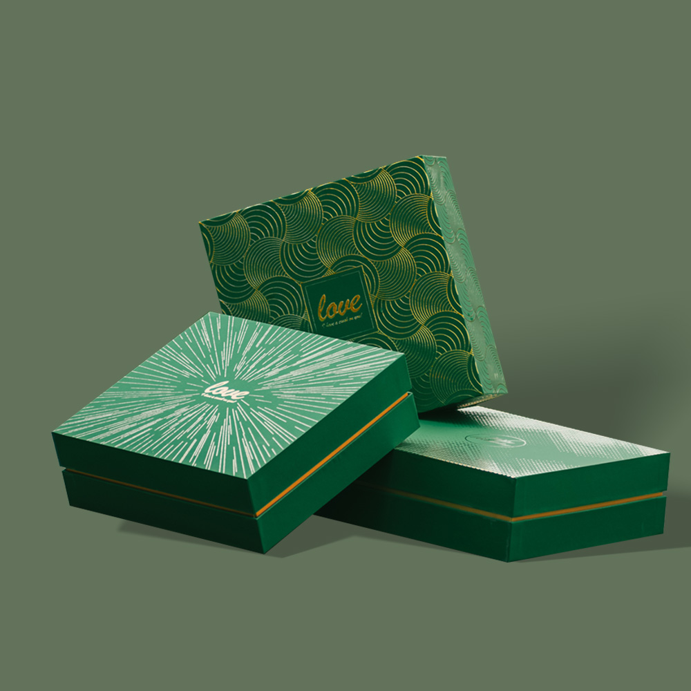 Green Rigid Gift Box with Gold Foil Pattern Design