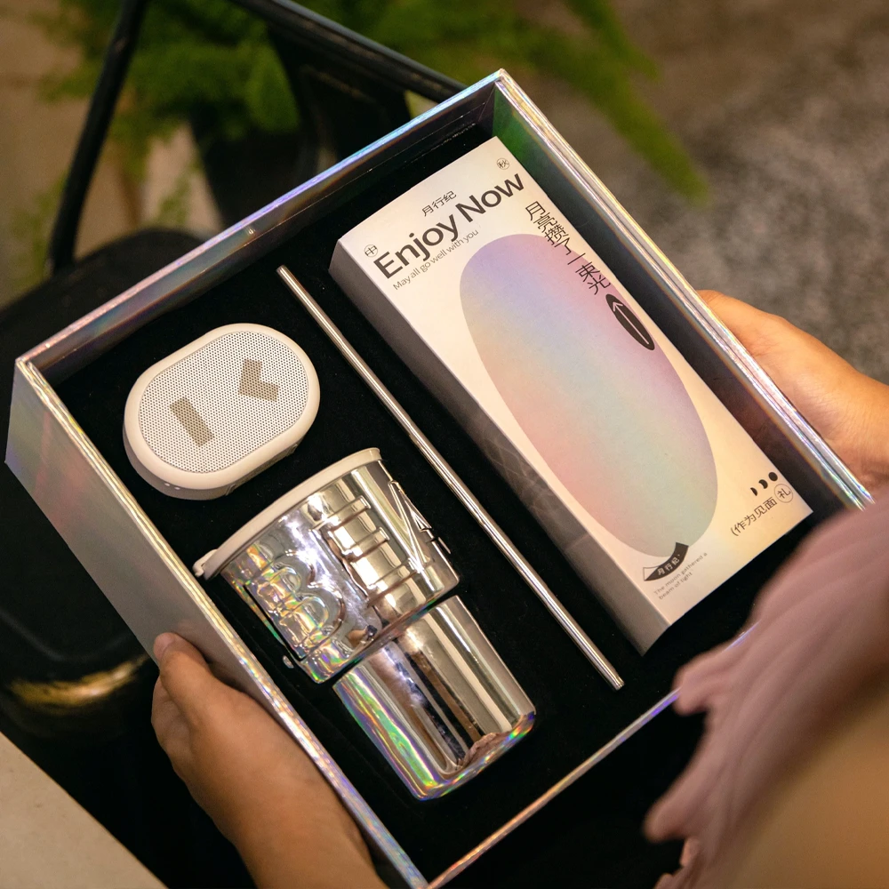 Holographic Moon-Themed Rigid Gift Box with Futuristic Design