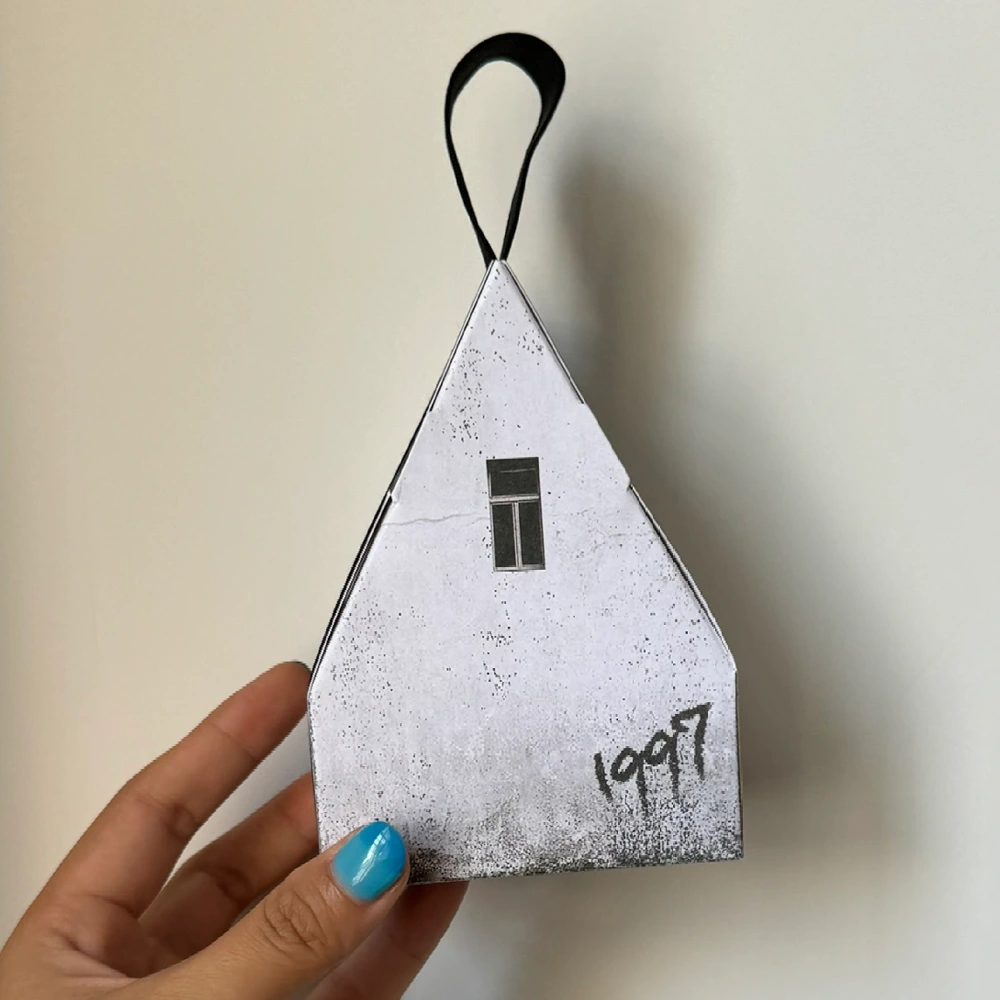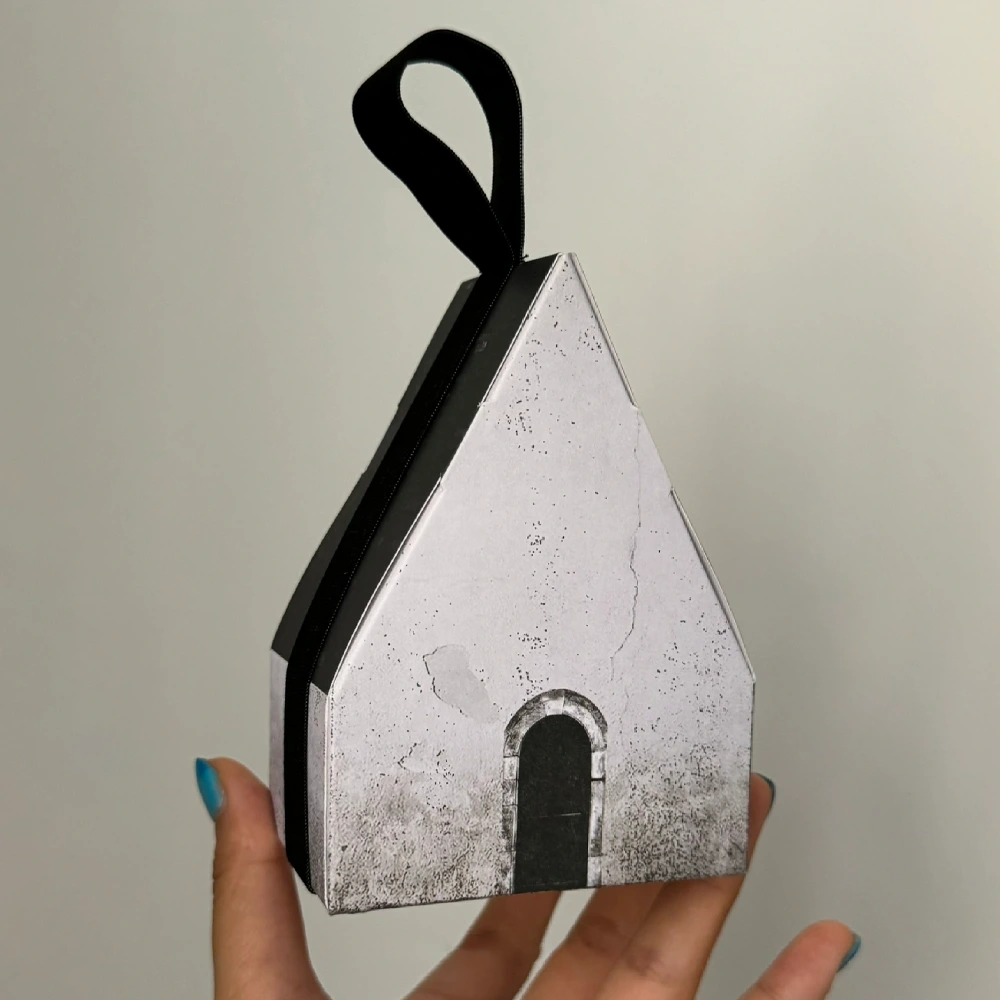 House-Shaped Gift Box with Ribbon Handle and Hand-Painted Effect