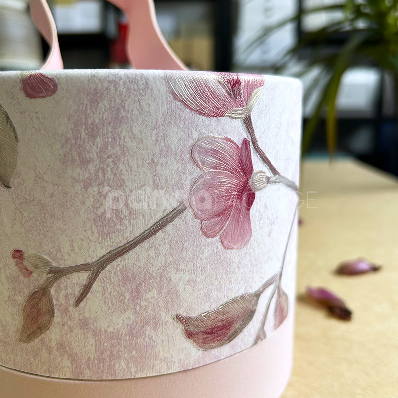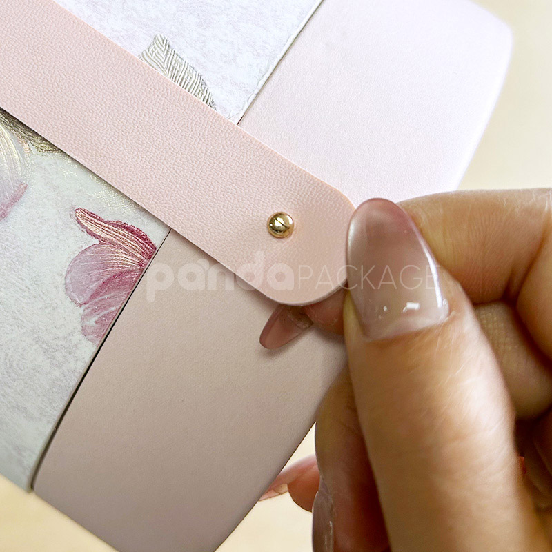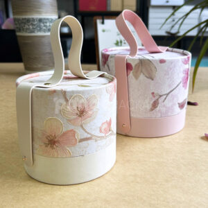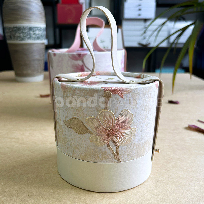 Ivory Pink Round Handheld Gift Box with Scodix Digital Enhancement and Faux Leather Handle