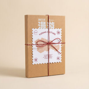 Sustainable and stylish rigid packaging with flip-open structure and secure tie closure.