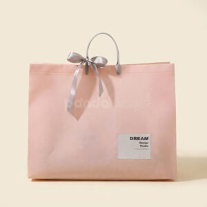 Laminated Non-Woven Tote Bags with Plastic Handles and Ribbon Bow for Apparel Packaging