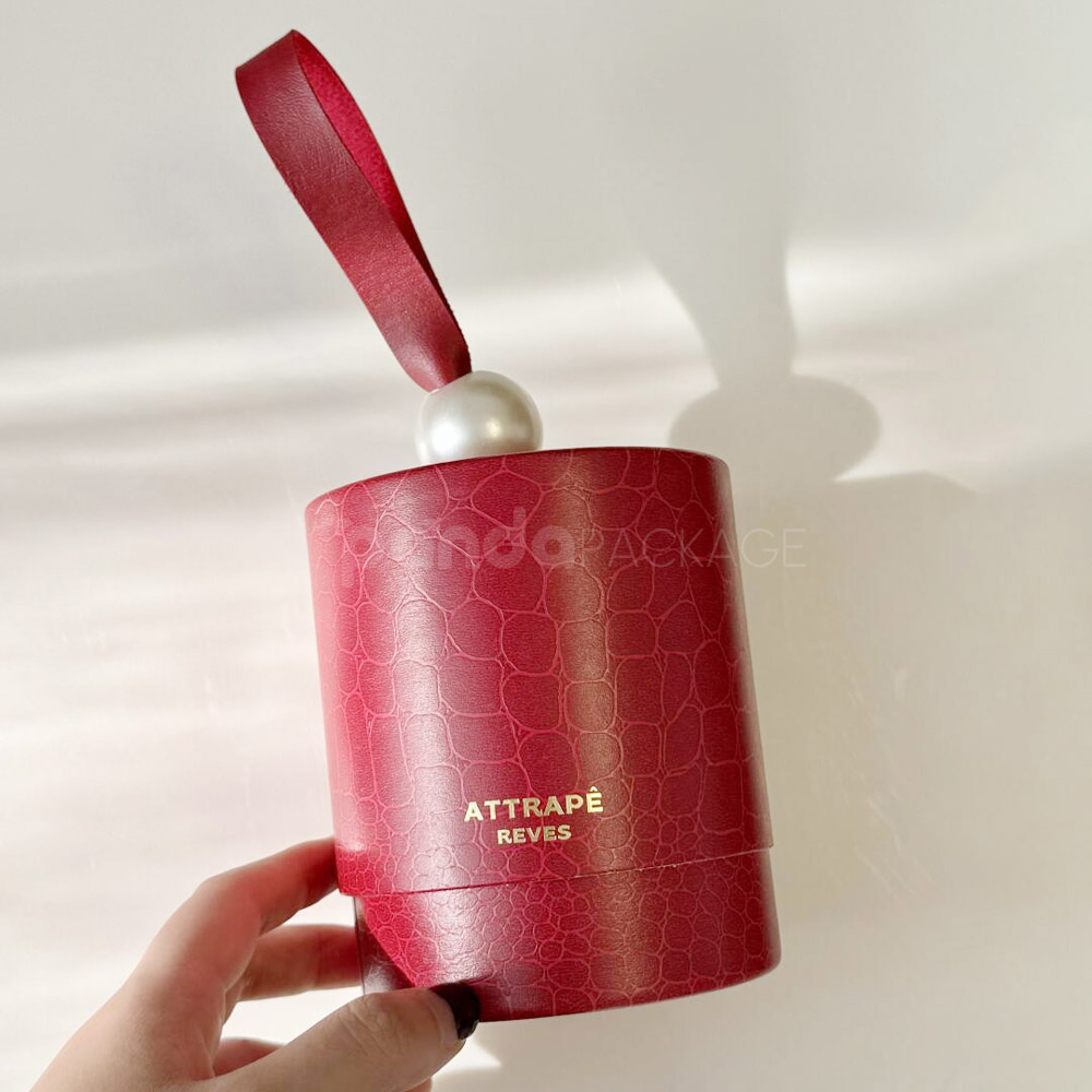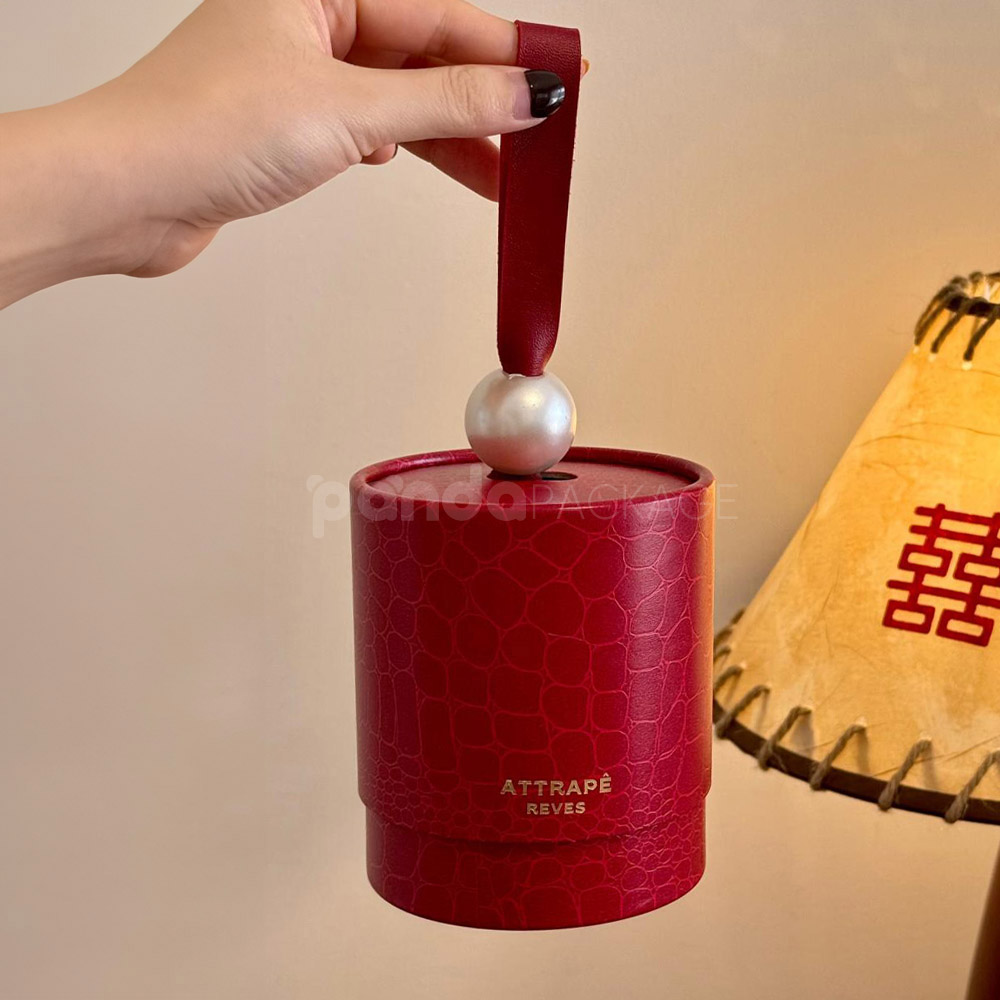 Luxurious Red Cylinder Candy Gift Box with Pearl Handle