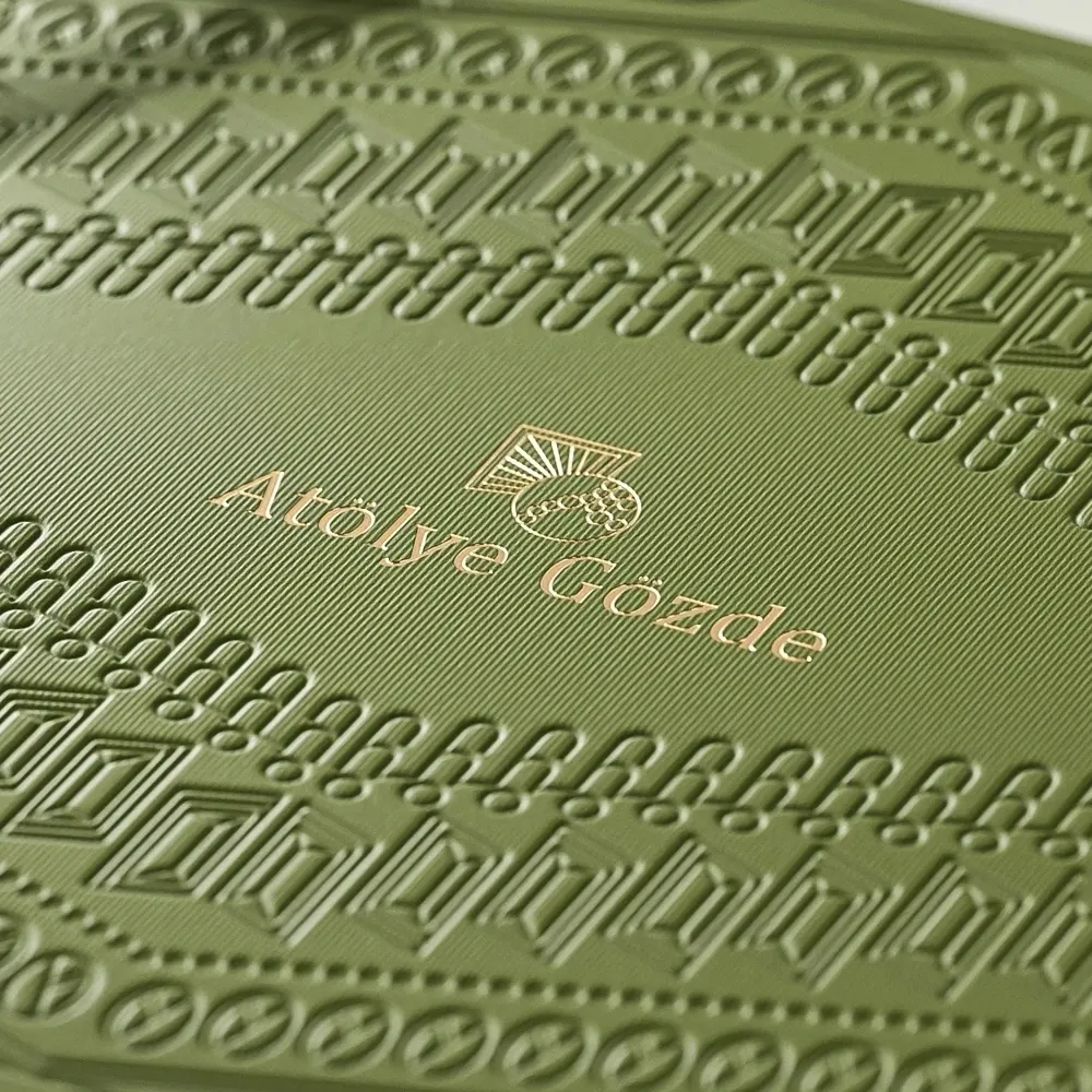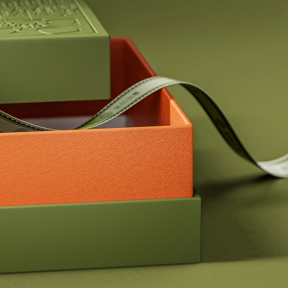 Elevate your brand with this premium green rigid box, meticulously crafted with an embossed geometric pattern and highlighted by a gold foil logo. The sturdy lid and base construction delivers exceptional protection for luxury goods, while the striking orange interior adds a bold pop of color that enhances the unboxing experience. Perfect for jewelry packaging, fashion accessories, cosmetics, and upscale gift items, this luxury rigid box combines durability with distinctive visual appeal. The textured finish provides a tactile experience that reflects superior craftsmanship and attention to detail. Ideal for retail, e-commerce, and gift-giving occasions, this packaging solution is designed to make your product stand out and leave a lasting impression on customers seeking quality and elegance.