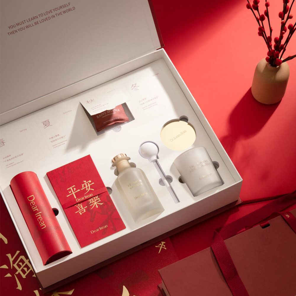 Luxury Red Cosmetic Gift Box Set with Aromatherapy Products