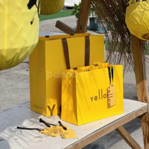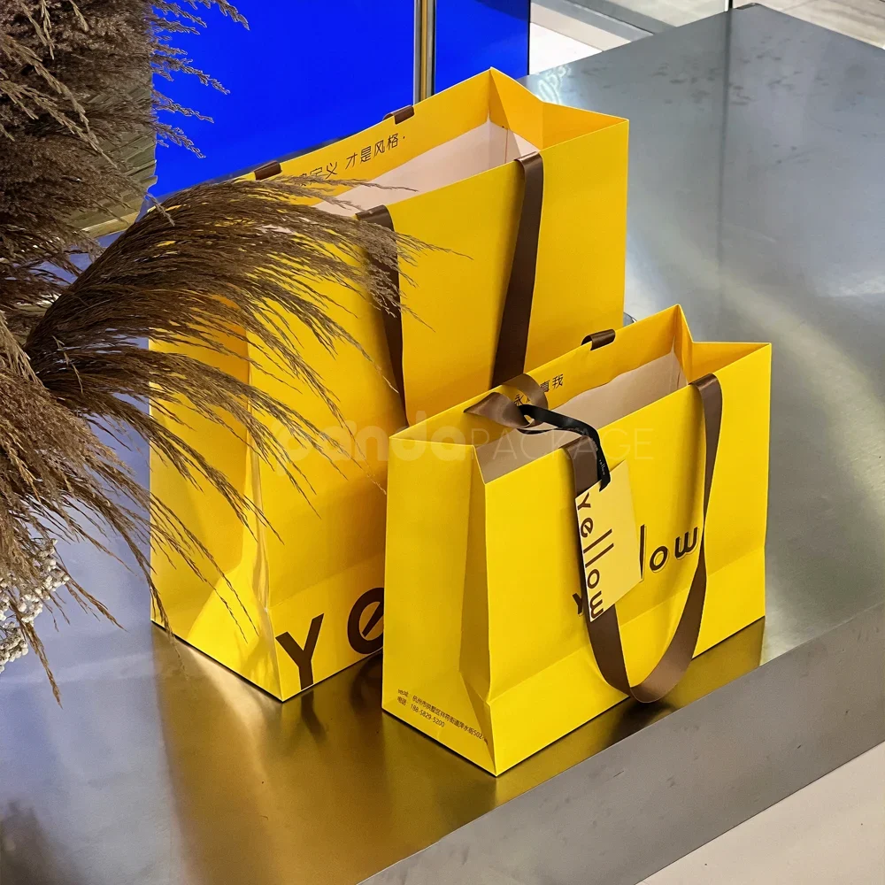 Luxury Yellow Shopping Bag with Wide Ribbon Handles