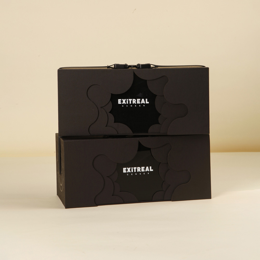 Matte Black Drawer Gift Box with Embossed Cloud Pattern