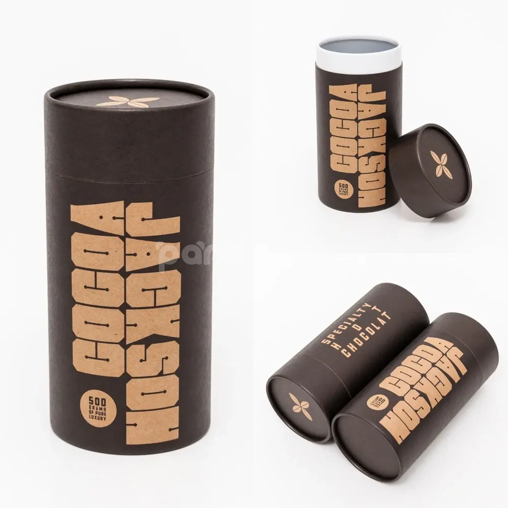 Matte Black Two-Piece Lid Cardboard Tube with Gold Foil Print