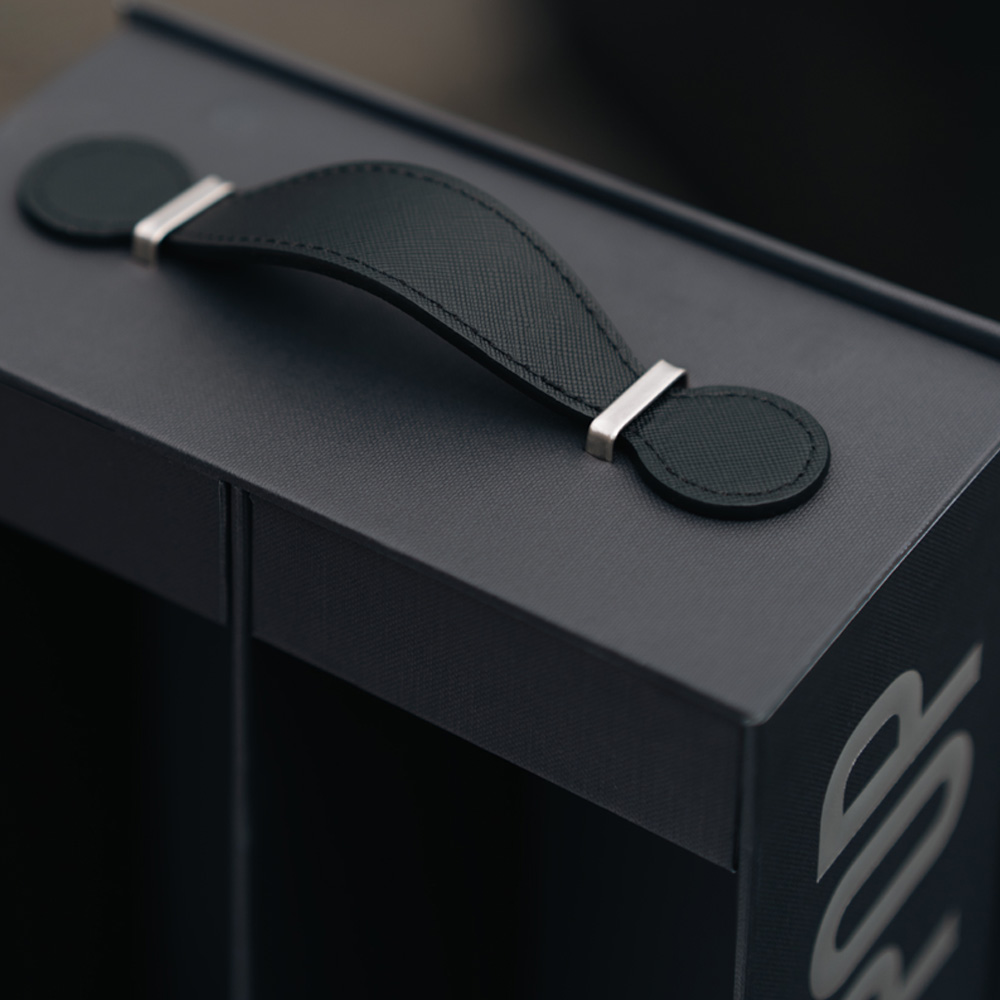 Matte Black Wine Gift Box with Handle & Foil Logo