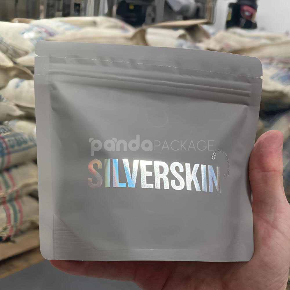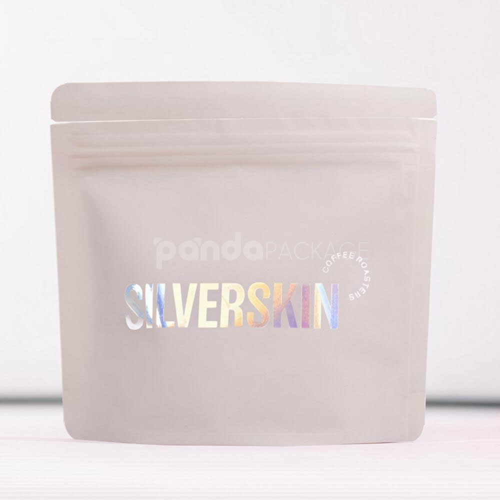 Matte Stand Up Coffee Pouch with Holographic Logo Design