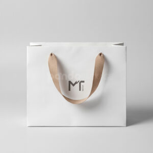 Minimalist White Gift Bag with Brown Ribbon Handles
