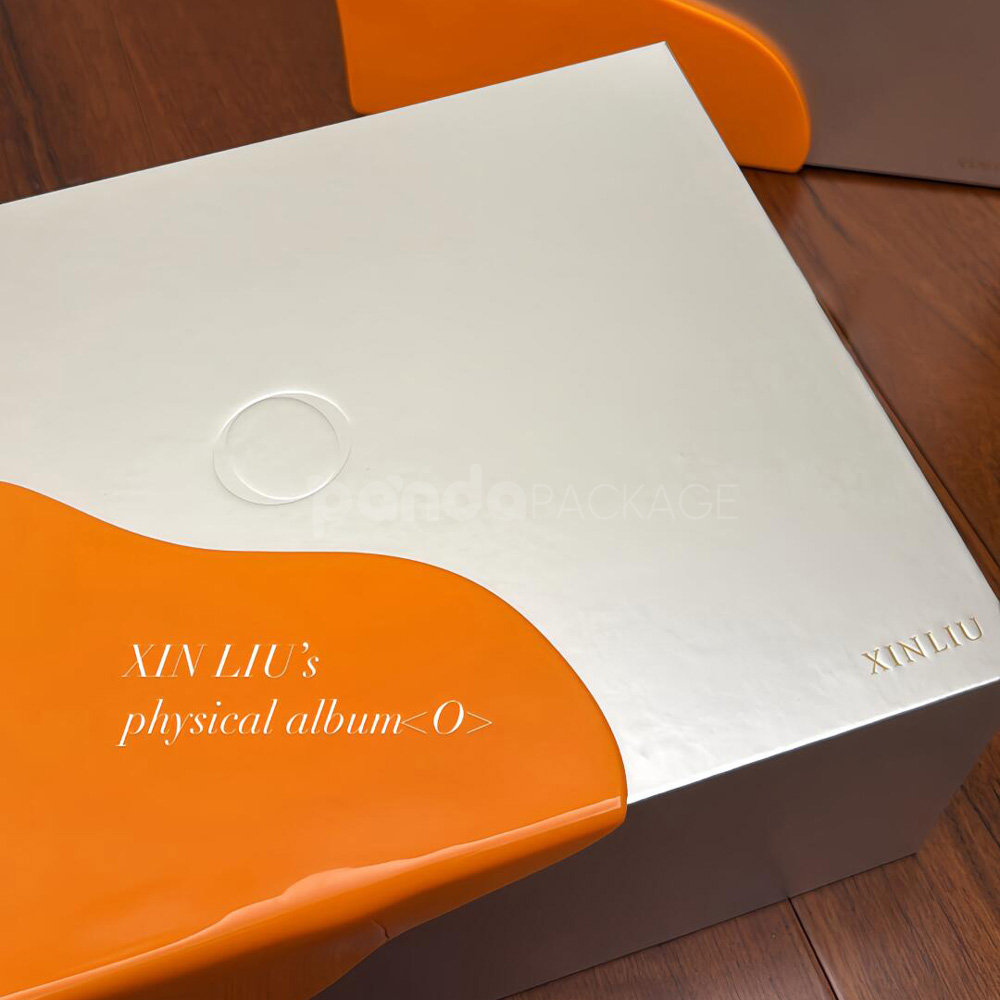 Modern Media Packaging with Minimalist Silver and Orange Design