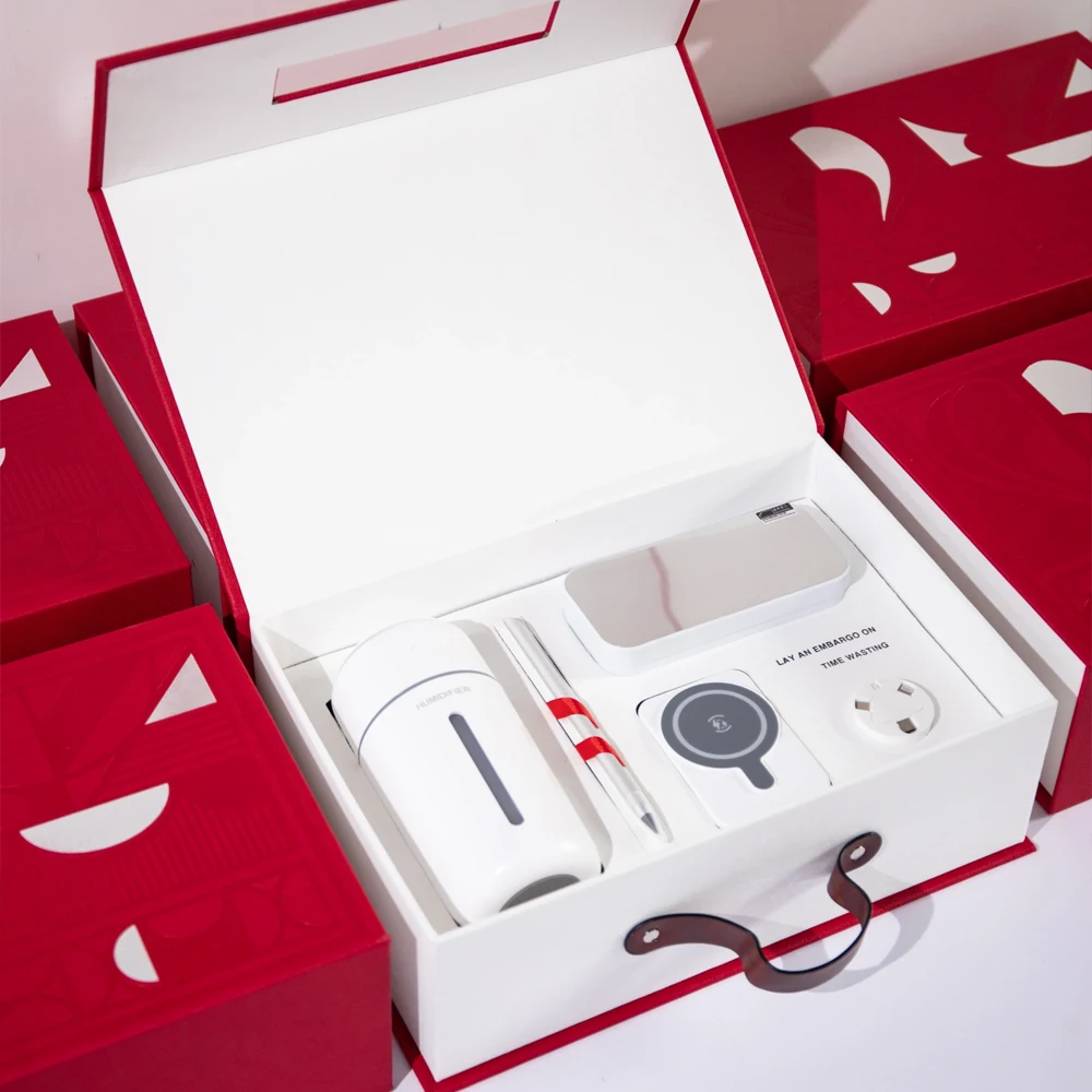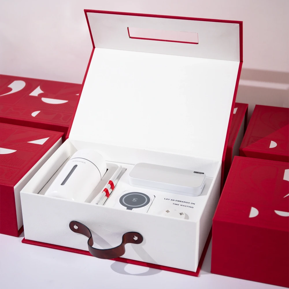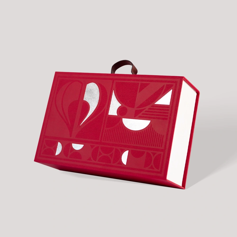 Modern Red & White Cosmetic Gift Box with Handle