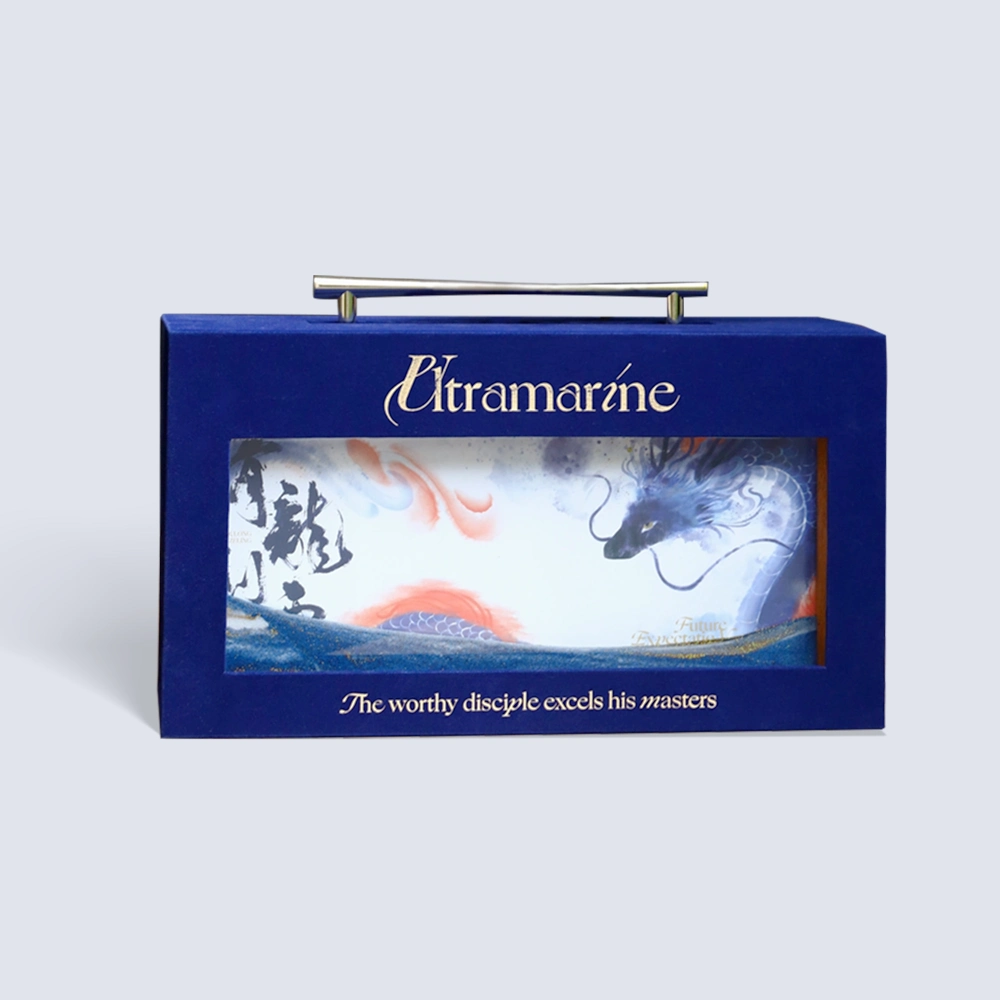 Oriental-Inspired Blue Magnetic Gift Box with Artistic Illustration